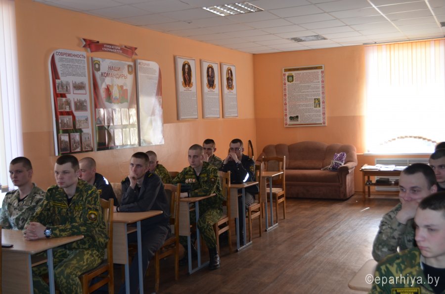 1 апреля в 5-ой отдельной патрульной роте в/ч 5525 в г. Светлогорске состоялась встреча военнослужащих со священником. Благочинный Светлогорского округа протоиерей Александр Кисель рассказал воинам о третьей неделе Великого поста - Крестопоклонной, отметил, что именно Крест является главным орудием нашего спасения и символом Воскресения Христова. Священнослужитель благословил солдат на достойное несение воинского долга. |