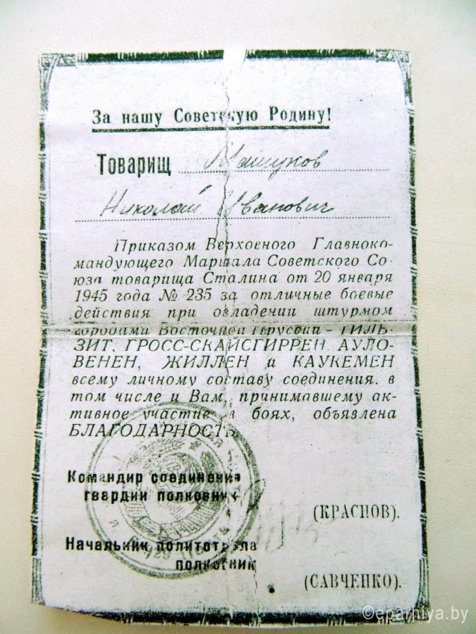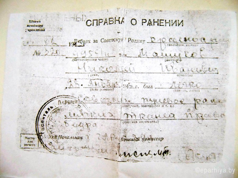 В рамках празднования 70-й годовщины Великой Победы в Добрушском благочинии было проведено несколько значимых мероприятий. 6 и 7 мая молодые прихожане Свято-Никольского собора посетили ветеранов Великой Отечественной Войны, проживающих на территории района, а 8 мая состоялась встреча совместно организованная приходом храма и общественным объединением БелТИЗ. -- Получилась настоящая экспедиция по сбору материала о войне. Непередаваемое ощущение прикосновения к живой истории! – делиться своими впечатлениями об общении с ветеранами благочинный Добрушского благочинного округа протоиерей Алексий Пилипенко, -- Сначала мы поехали в деревню Иваки к Машукову Николаю Ивановичу. Нас встретил благообразного вида, чистенький и румяный старик. Речь грамотная и самобытная. Когда началась война, ему было 17 лет. Он рассказал нам о мобилизации на фронт, о боях в Восточной Пруссии, о ранении. Во время сражений Николай Иванович был связным, передавал приказы командира бойцам на передовую. Участвовал в освобождении Кенигсберга. 7 мая молодые прихожане Свято-Никольского собора с отцом Алексием направились к Анастасии Кондратьевне Титовой, проживающей в Добруше, прихожанке Свято-Никольского собора. -- Это очень бодрая, невероятно светлая старушка с игривым огоньком в глазах, -- продолжает свой рассказ протоиерей Алексий Пилипенко, -- В войну она была санитаркой. Поначалу стирала окровавленную одежду солдат, затем выносила раненых после боя. Потом была «Санлетучка» – небольшой маневренный поезд, на котором девятнадцатилетняя «сестричка» под бомбёжками от линии фронта сопровождала раненых бойцов в тыловые госпитали. Но самые тяжелые воспоминания у нее связаны с перевозкой тяжелораненых изувеченных солдат из прифронтовых госпиталей в глубокий тыл на военно-санитарном поезде номер 1123. Каких только страданий не насмотрелась эта мужественная женщина! Во время разговора Анастасия Кондратьевна иногда вздрагивает от воспоминаний: «Я вижу войну, как наяву…» В завершении отец Алексий отметил: -- Мы рады, что нам довелось пообщаться с этими легендарными людьми. Мы познакомились с настоящими героями, которые сияют такой внутренней силой, такой любовью к жизни, что нашему поколению стоит у них поучиться. На следующий день в Свято-Никольском храме прошла встреча, на которой представители общественного объединения БелТИЗ сердечно поздравили своего коллегу, ветерана войны Анатолия Никаноровича Куликова с 70-й годовщиной Победы в Великой Отечественной. Обращаясь ко всем собравшимся, клирик собора протоиерей Евгений Шупеня, поблагодарил ветерана за его подвиг, пожелал здоровья и долгих лет. Завершилось мероприятие праздничным чаепитием и концертом, на котором свои произведения о войне исполнили поэт-бард Алексей Скачков и поэтесса Людмила Яськова. |