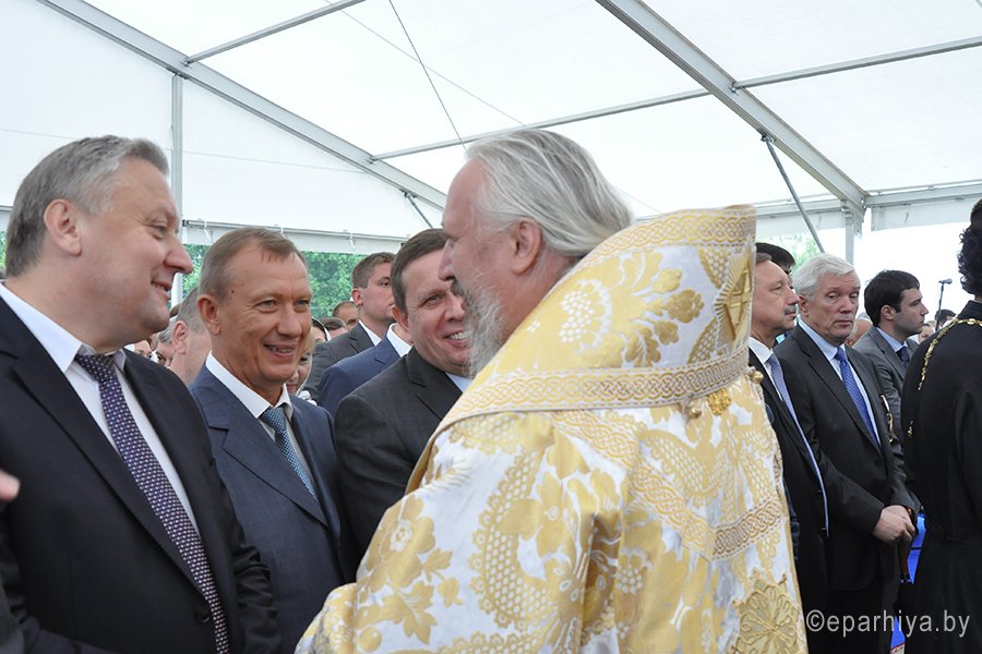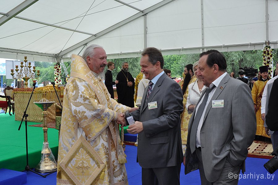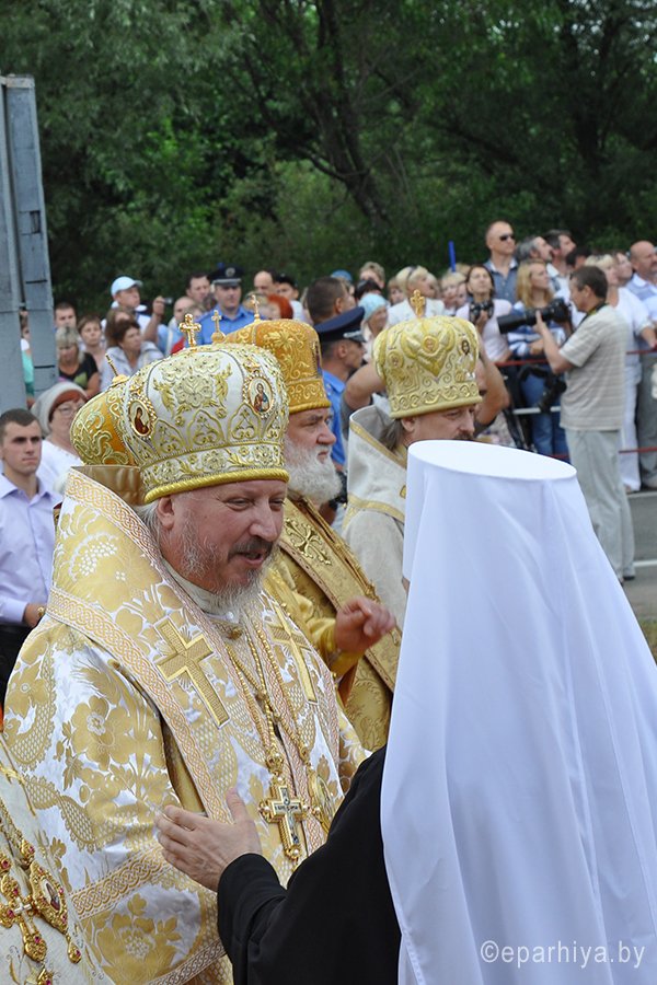 29 июня Преосвященнейший Стефан, епископ Гомельский и Жлобинский, принял участие в праздновании Международного молодежного фестиваля «Дружба-2013», состоявшемся на границе трех братских славянских государств России, Беларуси и Украины. В этом году праздник был посвящен 1025 –летию Крещения Руси и принимающей стороной была Украина. Епископ Стефан также принял участие в Божественной литургии, с которой начались празднества. Возглавили ее Блаженнейший Владимир Предстоятель Украинской Православной Церкви, Московского Патриархата и митрополит Волоколамский Иларион Председатель Отдела внешних церковных связей Московского Патриархата в сослужении духовенства. Епископ Стефан возглавил на празднике делегацию духовенства Гомельской епархии. Также в торжественном богослужении участвовал хор Гомельского собора Святых апостолов Петра и Павла. В мероприятии приняли участие официальные лица трех братских стран. В их числе председатель Черниговской облгосадминистрации Владимир Хоменко и председатель областного совета Анатолий Мельник, народные депутаты Игорь Рыбаков и Михаил Чечетов, почетный гражданин города Прилуки Юрий Коптев, чрезвычайный и Полномочный Посол Российской Федерации в Украине Михаил Зурабов, Уполномоченный представитель Президента Российской Федерации в Центральном федеральном округе Александр Беглов, губернатор Брянской области Николай Денин. От Беларуси - помощник Президента Республики Беларусь, главный инспектор по Гомельской области Анатолий Лис, губернатор Гомельского облисполкома Владимир Дворник. В ходе мероприятия состоялась беседа митрополита Иллариона с епископом Стефаном. И в целом нужно отметить, что очень многие представители нашей общей Православной Церкви, живущие в трех братских странах, на этом фестивале славянского единства воспользовались возможностью пообщаться, обсудить интересующие вопросы. После Божественной литургии в центре внимания оказался Монумент Дружбы. Как основной организатор празднеств, украинская сторона подготовила красочное шоу, посвященное главной теме – 1025-летию Крещения Руси. В театрализованном представлении рассказывалось о том, как княгиня Ольга привила любовь к православной вере своему внуку Владимиру Святославичу, который и стал Крестителем Руси. Зрителям представили и три огромных рушника, вышитых мастерами Брянщины, Черниговщины и Гомельщины. Повсеместно раскинулись выставки, торговые ряды, проходили развлекательные, спортивные мероприятия, концертные программы и презентации. Праздничные действа происходили не только на земле, в воде озера, но и в небе, куда отпустили несколько десятков белых голубей, а затем отправились сотни шаров — сине-желтые от Украины, бело-красно-зеленые от Беларуси и бело-сине-красные от России. |