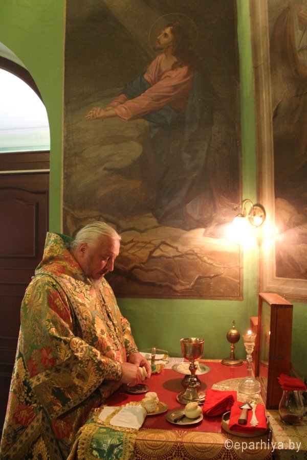 10 июля 2013г. в день памяти преподобного Мартина Туровского, поминаемого в Соборе белорусских святых, Преосвященнейший Стефан, епископ Гомельский и Жлобинский, совершил Божественную Литургию в Гомельском Свято-Никольском мужском монастыре. Владыке сослужили архимандрит Амвросий, наместник Свято-Никольского мужского монастыря, архимандрит Савва и братия обители.Преподобный Мартин Туровский служил поваром при Туровских епископах Симеоне, Игнатии, Иоакиме (1144 — 1146) и Георгии. Последний святитель уволил святого Мартина по его старости. Но старец не захотел расстаться с монастырем (епископы жили при Туровской обители в честь святых Бориса и Глеба) и принял монашество. В прежних трудах он надорвался и поэтому часто болел. Однажды святой Мартин лежал неподвижно и кричал от боли. Усердно призывал он на помощь святых князей Бориса и Глеба. На третий день к нему явились святые князья, подали испить воды и исцелили от болезни. После этого чудесного исцеления блаженный Мартин прожил еще один год. Скончался преподобный Мартин после 1146 года. |