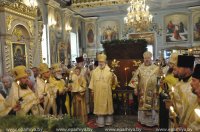 11 июля 2012 года в кафедральном соборе святых апостолов Петра и Павла состоялось совместное богослужение высокопреосвященнейшего Александра, епископа Городецкого, викария Киевской митрополии и преосвященного Стефана, епископа Гомельского и Жлобинского.Владыке Стефану сослужили: секретарь Гомельского епархиального управления протоиерей Георгий Алампиев, благочинный Гомельского городского округа протоиерей Стефан Гладыщук, ключарь собора протоиерей Иоанн Лендел с клиром собора и духовенством епархии. |