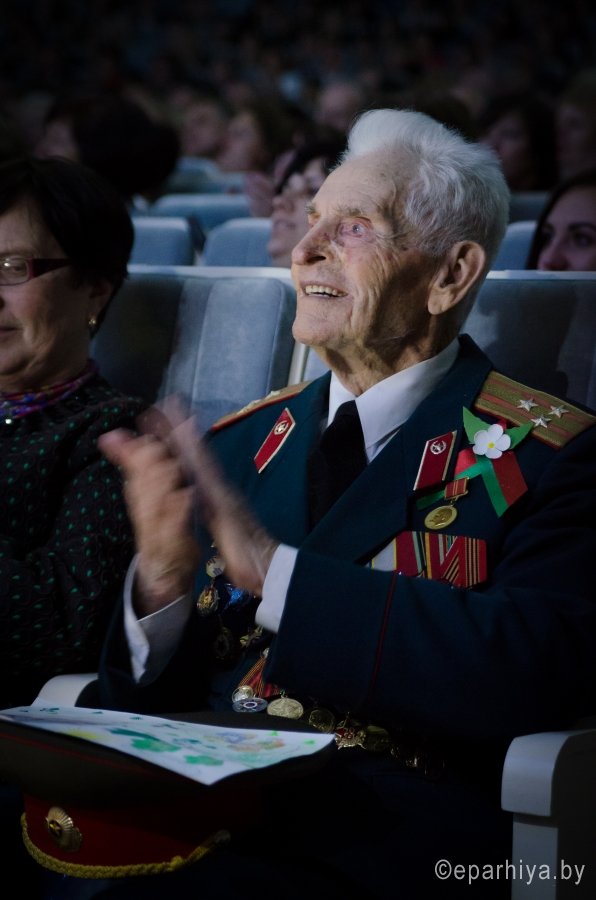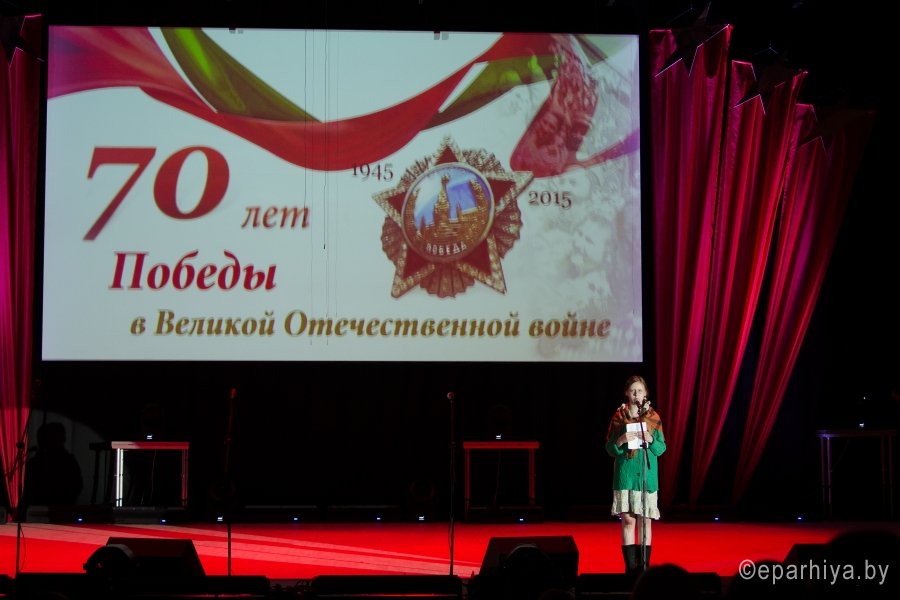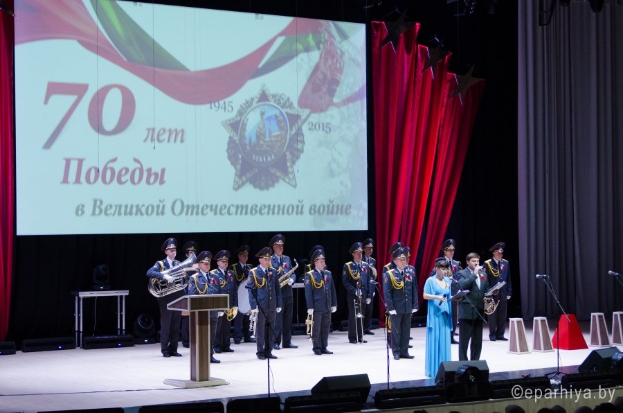 8 мая 2015г., в областном центре культуры города Гомеля прошел праздничный концерт, посвященный 70-летию Победы нашего народа над немецко-фашистской Германией, на который были приглашены ветераны войны, узники концлагерей, работники тыла, инвалиды войны и воины-интернационалисты. Открыл торжество председатель облисполкома Владимир Дворник словами поздравления. Губернатор в своей вступительной речи поблагодарил ветеранов за мирное небо над головой. В ходе мероприятия Преосвященнейший Стефан выразил глубокую признательность ветеранам за их Великий Подвиг и от всего сердца пожелал крепости духа и долгих лет жизни. На праздничном концерте творческими коллективами города Гомеля исполнялись музыкальные композиции военных лет. Под мелодии знакомых песен ветераны с ностальгией вспоминали тяжелое время своей героической молодости. |