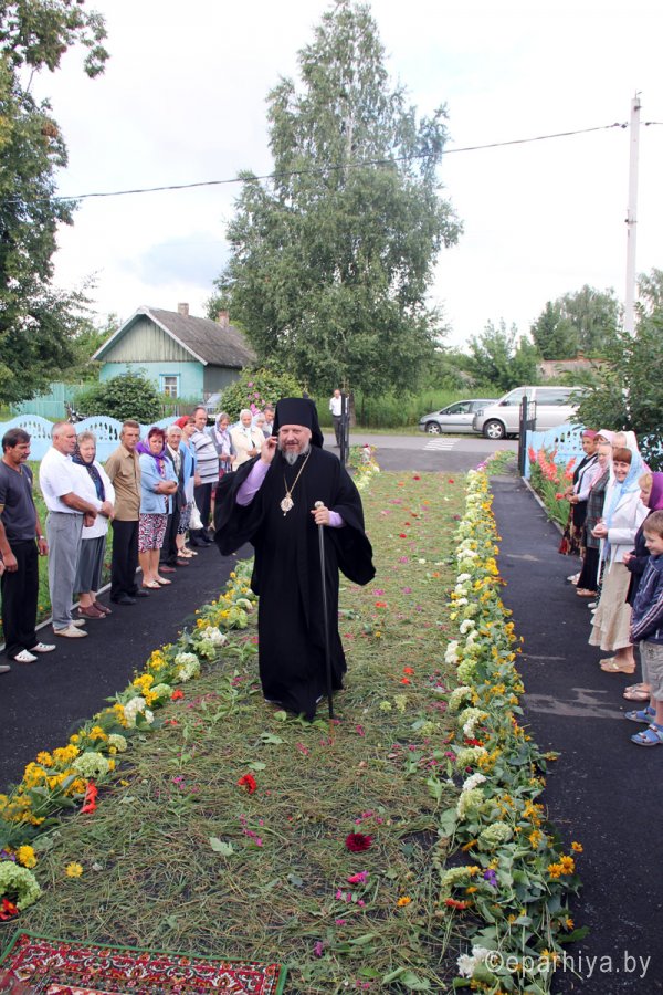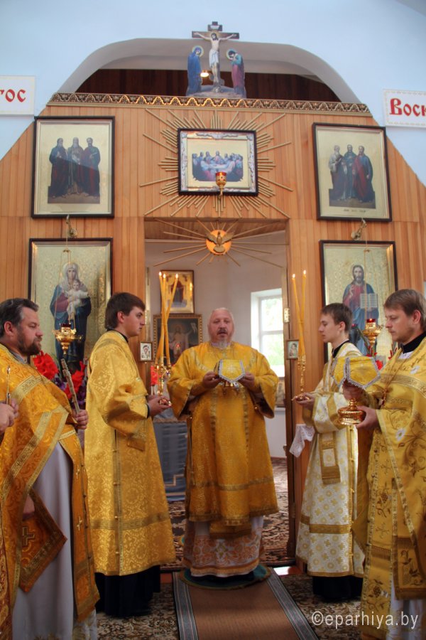 18 июля 2013 года, в день памяти святого преподобного Сергия Радонежского, Преосвященнейший Стефан, епископ Гомельский и Жлобинский, совершил Божественную литургию в храме Покрова Пресвятой Богородицы д.Телеши.Владыке сослужили: секретарь Гомельской епархии протоиерей Георгий Алампиев, благочинный церквей Гомельского районного округа протоиерей Сергий Леоньков, настоятель храма протоиерей Сергий Вараксин, приглашенное духовенство епархии. По окончании богослужения Его Преосвященство поздравил всех с праздником обретения мощей святого преподобного Сергия Радонежского, напомнил собравшимся о великих молитвенных подвигах святого, 700 лет со дня рождения которого Русская Православная Церковь будет отмечать в следующем 2014 году. Владыка поздравил отца-благочинного и отца-настоятеля с Днем небесного покровителя и пожелал помощи Божией в пастырском служении. |