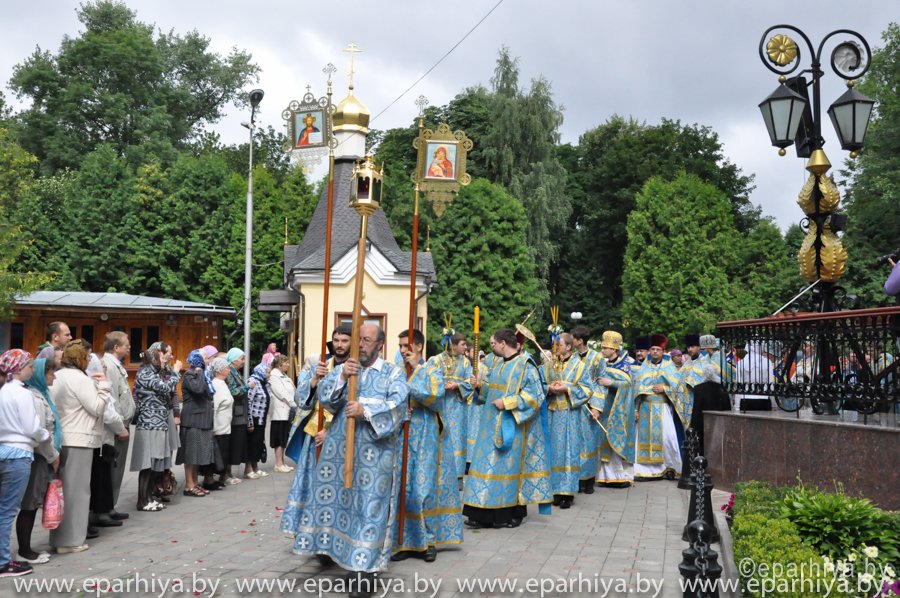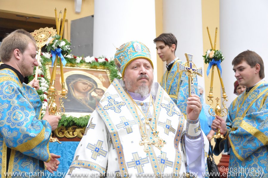 21 июля 2013 года в праздник Казанской иконы Божией Матери епископ Гомельский и Жлобинский Стефан возглавил Божественную Литургию в Свято-Петро-Павловском кафедральном соборе г.Гомеля, где находится придел Казанской иконы Божией Матери. Владыке сослужили: секретарь Гомельской епархии протоиерей Георгий Алампиев, благочинный церквей Гомельского городского округа протоиерей Стефан Гладыщук, руководители отделлов и приглашенное духовенство. Протоиерей Евгений Трусилов произнес проповедь и поздравил прихожан с праздником. После богослужения состоялся Крестный ход и акафист, который возглавил Владыка Стефан. |