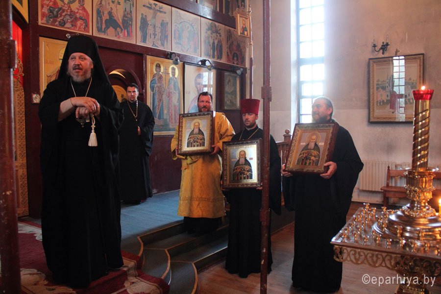 Вечером 27 июля, накануне дня памяти Святого равноапостольного великого князя Владимира, епископ Гомельский и Жлобинский Стефан совершил всенощное бдение в храме Святого благоверного князя Александра Невского г.Гомеля.Владыке сослужили: секретарь Гомельской епархии протоиерей Георгий Алампиев, эконом Гомельской епархии протоиерей Владимир Масалитин, настоятель прихода протоиерей Владимир Силенко и духовенство прихода. По окончании богослужения владыка поздравил настоятеля храма протоиерея Владимир Силенко, протоиерея Владимира Масалитина, диакона Владимира Юзенкова с Днем Ангела и преподнес в подарок иконы с образом святого праведного Иоанна Кормянского. |