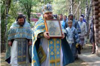 10 августа 2013 года, в день праздника Смоленской иконы Божией Матери «Одигитрия», Преосвященнейший Стефан, епископ Гомельский и Жлобинский, совершил Божественную литургию в храме Смоленской иконы Божией Матери на подворье Свято-Никольского мужского монастыря в д.Терюха.Владыке сослужили наместник Свято-Никольского мужского монстыря архимандит Амвросий (Шевцов) с братией. Крестный ход с иконой Пресвятой Богородицы, проповедь Его Преосвященства со словами назидания и поздравлениями с праздником и его архипастырское благословение прихожанам, преподаваемое с иконками Божией Матери, завершили богослужение. |