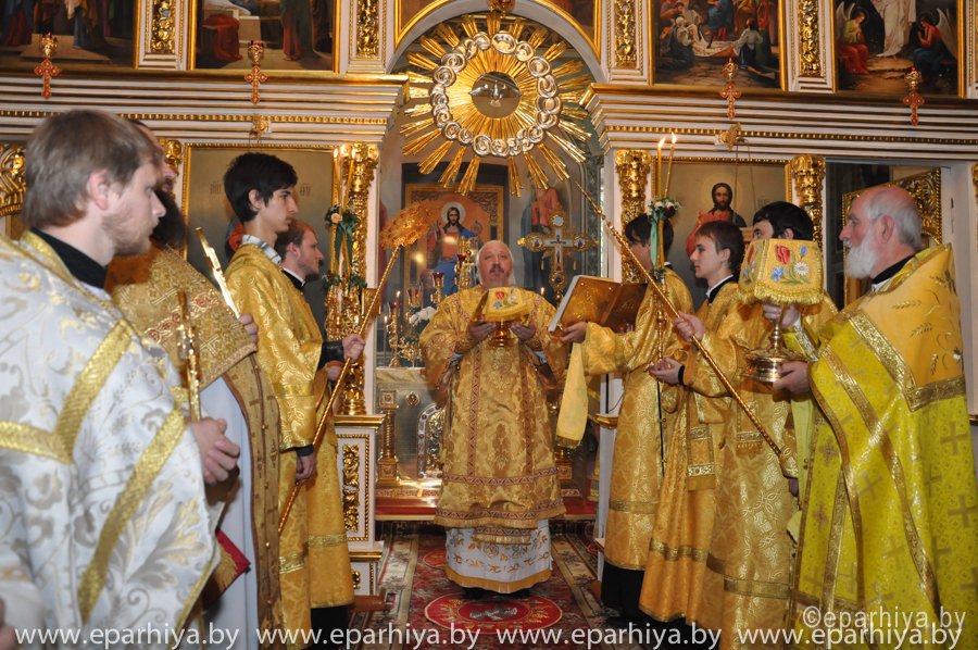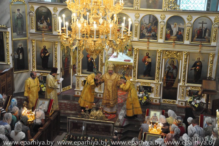 11 августа 2013 года духовенство и паства Гомельской епархии отмечает память святой праведной Манефы Гомельской, мощи которой покоятся в кафедральном соборе святых апостолов Петра и Павла.Здесь, в день прославления в лике местночтимых святых матушки Манефы, Преосвященнейший Стефан, епископ Гомельский и Жлобинский, в сослужении преосвященнейшего Софрония, епископа Могилевского и Мстиславского и преосвященнейшего Сергия, епископа Клинцо?вского и Трубче?вского, совершил Божественную Литутргию. Владыке сослужили: секретарь Гомельского епархиального управления протоиерей Георгий Алампиев, благочинный церквей Гомельского городского округа протоиерей Стефан Гладыщук, наместник Свято-Никольского мужского монастыря архимандрит Амвросий (Шевцов),благочинные районов, ключарь собора протоиерей Иоанн Лендел, руководители отделов епархиального управления, настоятели городских приходов г.Гомеля, духовенство собора и епархии. За богослужением клирики собора протоиерей Вадим Лапицкий и протоиерей Александр Лопушанский были удостоены права ношения Креста с украшением. По окончании богослужения духовенство и прихожане прошли Крестным ходом с мощами святой праведной Манефы Гомельской. Владыка Стефан поздравил всех с праздником и обратился к присутствующим со словами поздравления. В ответной речи преосвященные владыки благодарили Преосвященного Стефана, за столь теплый и радушный прием. В свою очередь Преосвященный Стефан преподнес иерархам медаль св.прав. Иоанна Кормянского, в ознаменование 1025-летия Крещения Руси и дня памяти прп.Манефы Гомельской. |