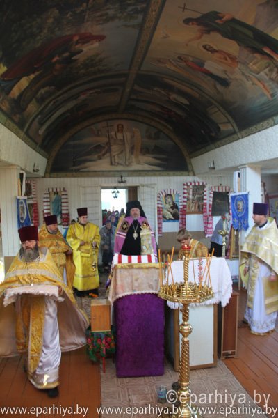 01 сентября 2013 года Преосвященнейший Стефан, епископ Гомельский и Жлобинский, в сослужении эконома Гомельской епархии протоиерея Владимира Масалитина, благочинного Чечерского округа протоиерея Георгия Шмидов, настоятеля иерея Федора Еремейчика совершил Божественную литургию в храме святителя Николая Чудотворца в д.Неглюбка Ветковского района Чечерского благочиния. |