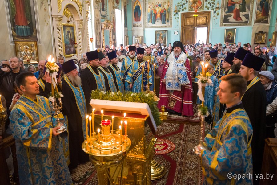 Всенощное бдение в канун праздника Благовещения Пресвятой Богородицы 6 апреля 2019г. Высокопреосвященнейший Стефан совершил в Петро-Павловском кафедральном соборе г.Гомеля. Высокопреосвященнейшему сослужили: секретарь Гомельской епархии протоиерей Георгий Алампиев и духовенство собора. По окончании богослужения Владыка обратился к молящимся со словами Архипастырского назидания. |