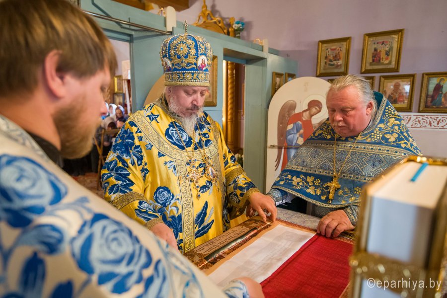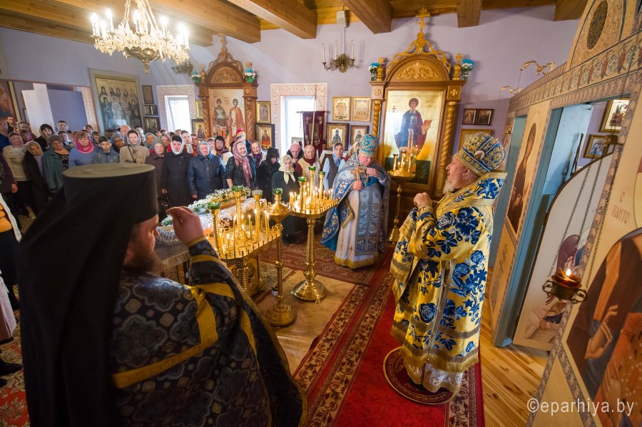 Божественную литургию в праздник Благовещения Пресвятой Богородицы 7 апреля 2019г. Высокопреосвященнейший Стефан совершил в храме мученика Иоанна Воина г.Жлобина. Высокопреосвященейшему сослужили: секретарь Гомельской епархии протоиерей Георгий Алампиев, благочинный Жлобинского округа протоиерей Василий Пилипенко и настоятель прихода иеромонах Кронид (Печевистый). По окончании богослужения Владыка поздравил причастников с принятием Святых Христовых Таин, обратился к молящимся со словами Архипастырского назидания и в память об этом дне раздал всем молящимся иконки. После Высокопреосвященнейший Стефан ознакомился с ходом строительных работ храма на территории прихода. |