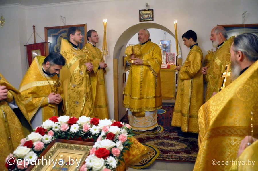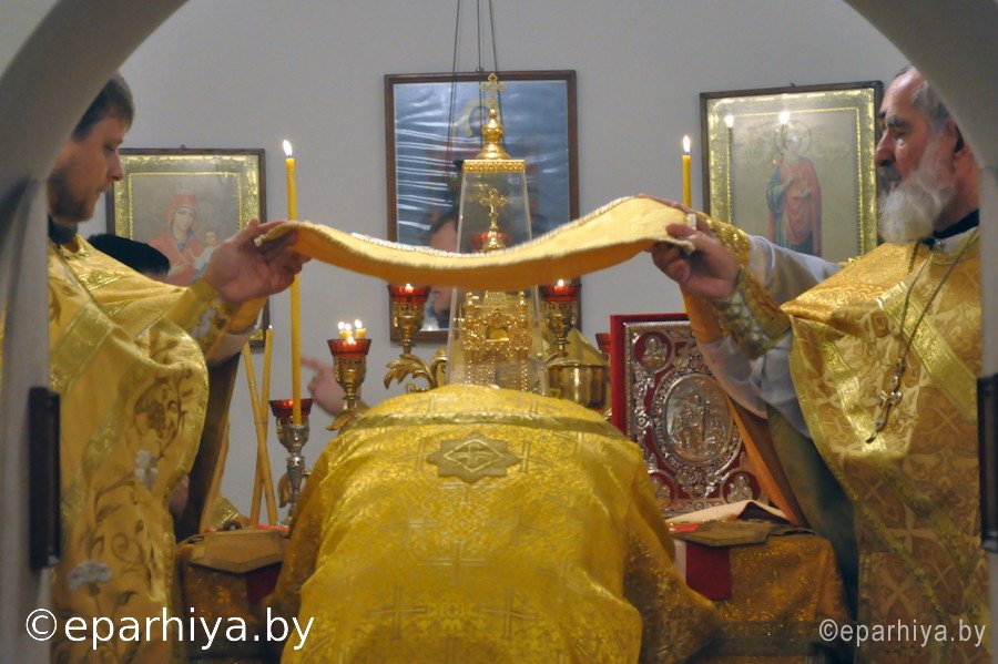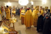 14 ноября 2013г. Преосвященнейший Стефан, епископ Гомельский и Жлобинский возглавил Божественную Литургию в храме святого великомученика и целителя Пантелеймонаг. Гомеля, нижний предел которого освящен в честь святых бессребреников Косьмы и Дамиана. Владыке сослужили: секретарь Гомельской епархии Георгий Алампиев, благочинный Гомельского городского округа протоиерей Стефан Гладыщук и духовенство храма. По окончании Литургии Преосвященный возглавил молебен и произнес проповедь. После Владыка ознакомился с ходом строительных работ в храме. |
