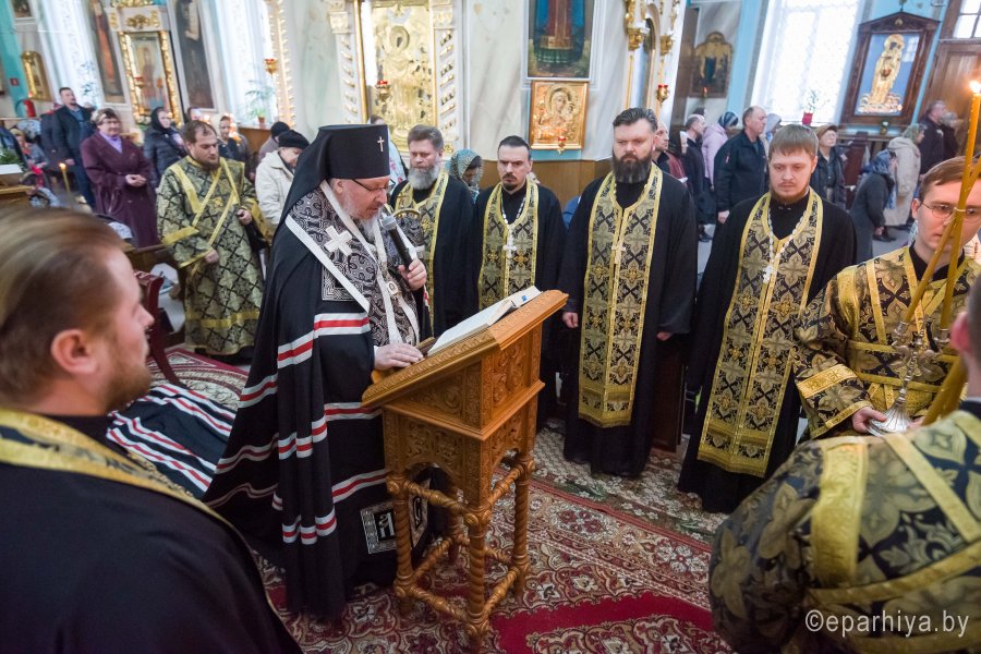 Утреню с чтением Великого покаянного канона преподобного Андрея Критского 10 апреля 2019г. Высокопресвященнейший Стефан совершил в Петро-Павловском кафедральном соборе города Гомеля. Высокопреосвященнейшему сослужили: секретарь Гомельской епархии протоиерей Георгий Алампиев и духовенство собора. По окончании богослужения Владыка обратился к молящимся со словами Архипастырского назидания. Утреня четверга пятой седмицы Великого поста, которая по обычаю служится в среду вечером, носит название Мариино стояние. Это богослужение посвящено подвигу преподобной Марии Египетской – удивительной святой, которая после греховной молодости 47 лет провела в пустыне в подвиге покаяния. Память святой Марии чтится 14 апреля, в воскресенье и четверг 5-й седмицы Великого Поста. На этой утрене полностью прочитываются Великий покаянный канон и житие прп. Марии Египетской. Житие разделено на две части: первая читается после кафизмы; вторая – после 3 песни. Читать канон святого Андрея Критского и житие преподобной Марии Египетской в четверг пятой седмицы установлено со времени VI Вселенского Собора. |