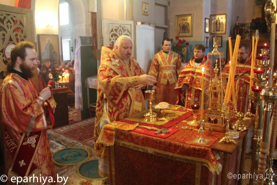 7 декабря 2013 г., в праздник святой великомученицы Екатерины, Преосвященнейший Стефан, епископ Гомельский и Жлобинский возглавил праздничную Литургию в храме св. вмч. Екатерины д. Гадичево Гомельского районного округа.Преосвященному сослужили: секретарь Гомельской епархии протоиерей Георгий Алампиев, благочинный монастырей Гомельской епархии архимандрит Амвросий (Шевцов), благочинный Гомельского районного округа протоиерей Сергей Леоньков и духовенство храма и епархии. По окончанию богослужения Владыка возглавил Крестный ход и поздравил молящихся с праздником. |