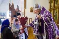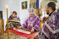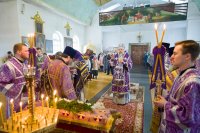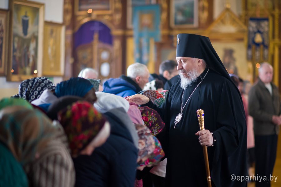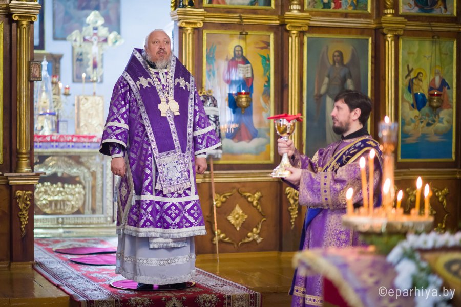Божественную литургию Преждеосвященных Даров в пятницу 5-й седмицы Великого Поста 12 апреля 2019г. Высокопреосвященнейший Стефан совершил в храме Святой Живоначальной Троицы г.Лоева. Высокопреосвященнейшему сослужили: благочинный Лоевского округа иерей Дмитрий Чварков и духовенство благочиния. По окончании богослужения Владыка поздравил причастников с принятием Святых Христовых Таин, обратился к молящимся со словами Архипастырского назидания и совершил чин освящения куполов и накупольных крестов. |