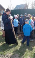 11 апреля протоиерей Александр Атрощенко, настоятель прихода храма Казанской иконы Божией Матери аг.Лучин, принял участие в экологической акции. 75 саженцев плодовых деревьев в честь 75-летия освобождения Лучина от немецко-фашистских захватчиков посадили на территории Лучинской базовой школы учащиеся, педагогический коллектив и гости мероприятия: председатель сельского совета Сулоева А.И., председатель Рогачёвского районного совета депутатов Ганкович В.Н. Финансовую помощь на приобретение саженцев оказали меценат аг. Лучин Казаков А.В. и вся его семья. Директор школы Омелюсик А.Я. поблагодарил гостей и учащихся за этот вклад в будущее агрогородка. |