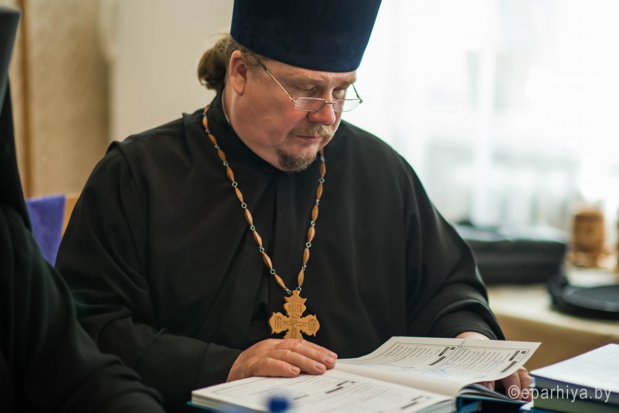 В ходе своего визита в Добрушский округ 17 апреля 2019г., Высокопреосвященнейший Стефан возглавил собрание духовенства округа. На собрании обсуждались текущие вопросы приходской жизни, план мероприятий на XVI Пасхальный фестиваль. Также в ходе собрания обсуждались мероприятия, посвященные 265-летию со дня рождения преподобного Серафима Саровского, 180-летию Полоцкого собора и 100-летию со дня преставления священномученика Митрофана Астраханского. По окончании собрания Владыка ознакомился с метрическими книгами и богослужебными журналами приходов благочиния. |