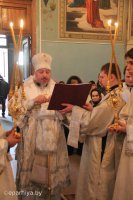 21 февраля 2014г. Преосвященнейший Стефан епископ Гомельский и Жлобинский возглавил всенощное бдение в Свято-Петро-Павловском кафедральном соборе г. Гомеля.За богослужением Владуке сослужили: секретарь Гомельской епархии протоиерей Георгий Алампиев и духовенство собора. |
