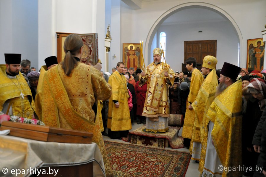 Последнее воскресенье перед Великим постом посвящается изгнанию из Рая прародителей, Адама и Евы, когда произошло страшное катастрофическое событие грехопадения. Человек отпал от Бога. В неделю сыропустную 2 марта 2014г. Преосвященнейший Стефан епископ Гомельский и Жлобинский возглавил Божественную Литургию в Спасо-Преображенском соборе г. Светлогорска. За богослужением Преосвященнейшему сослужили: секретарь Гомельской епархии протоиерей Георгий Алампиев, благочинный Светлогорского благочинного округа протоиерей Владимир Семенов и духовенство собора. По окончанию богослужения меценаты и благотворители, которые внесли большой вклад в работы по реставрации Спасо-Преображенского собора получили от Преосвященнейшего церковные награды. |