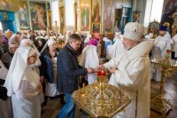 Божественную литургию в Лазареву Субботу 20 апреля 2019г. Высокопреосвященнейший Стефан совершил в Иоанно-Кормянском женском монастыре аг.Корма. Высокопреосвященнейшему сослужили: секретарь Гомельской епархии протоиерей Георгий Алампиев, благочинный монастырей Гомельской епархии архимандрит Амвросий (Шевцов) и духовенство епархии. Перед началом Литургии Владыка совершил акафистное пение у мощей святого праведного Иоанна Кормянского. По окончании богослужения Владыка поздравил причастников с принятием Святых Христовых Таин, обратился к молящимся со словами Архипастырского назидания и в память об этом дне раздал всем иконки. |