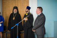 В канун праздника Входа Господня в Иерусалим Высокопреосвященейший Стефан, архиепископ Гомельский и Жлобинский совершил чин благословения иконы святого благоверного князя Александра Невского, переданной в дар Белорусскому государственному университету транспорта. В 1898 году Гомельская мужская гимназия переехала в новое здание - здание нынешнего БелГУТа. При новосооруженном здании гимназии, спроектированном Станиславом Шабуневским размещался домовой храм в честь святого благоверного князя Александра Невского. В ходе мероприятия с приветственным словом к присутствующим обратился ректор Белорусского государственного университета транспорта Юрий Иванович Кулаженко. Кандидат искусствоведения Евгений Романович Маликов представил историческую справку об архитекторе университета и об истории гимназического храма. Председатель комиссии по канонизации святых Гомельского епархии протоиерей Александр Лопушанский рассказал о жизни настоятеля храма святого благоверного князя Александра Невского протоиерее Феодоре Жудро (1864-1923). Хор храма священномученика Алексея Лельчицкого исполнил богослужебные песнопения. По окончании мероприятия Высокопреосвященнейший Стефан обратился к присутствующим со словами Архипастырского назидания и в память об этом дне раздал всем иконки сщмч. Митрофана Астраханского (первого епископа Гомельского). |