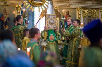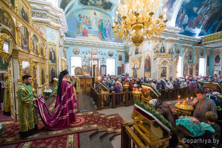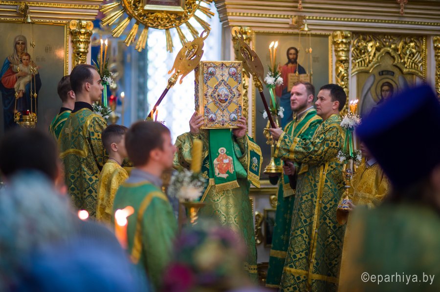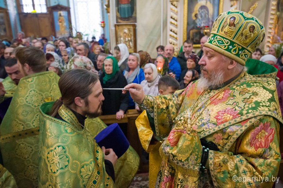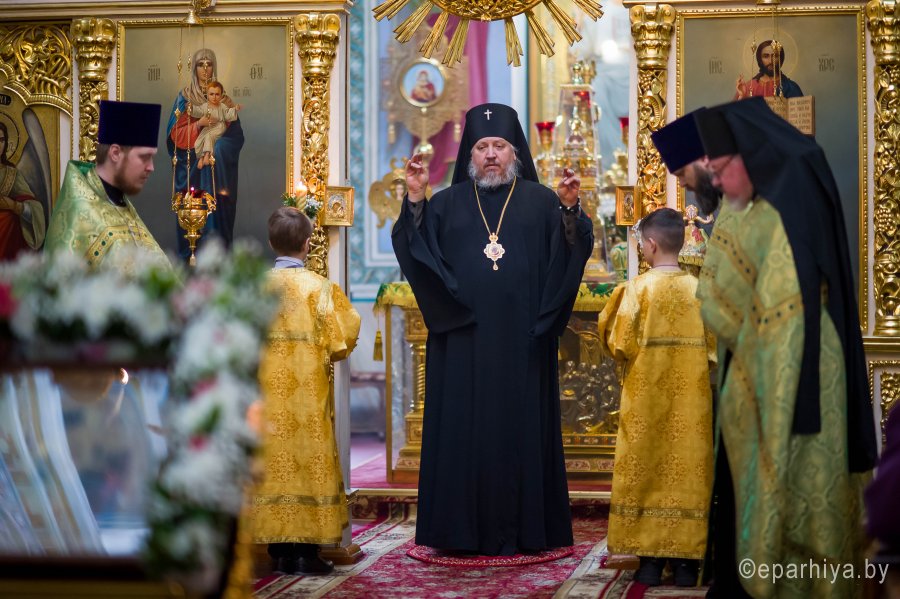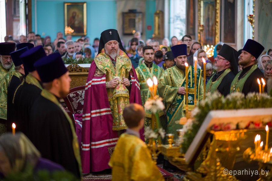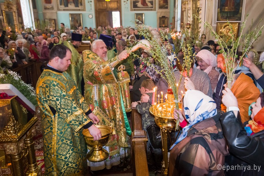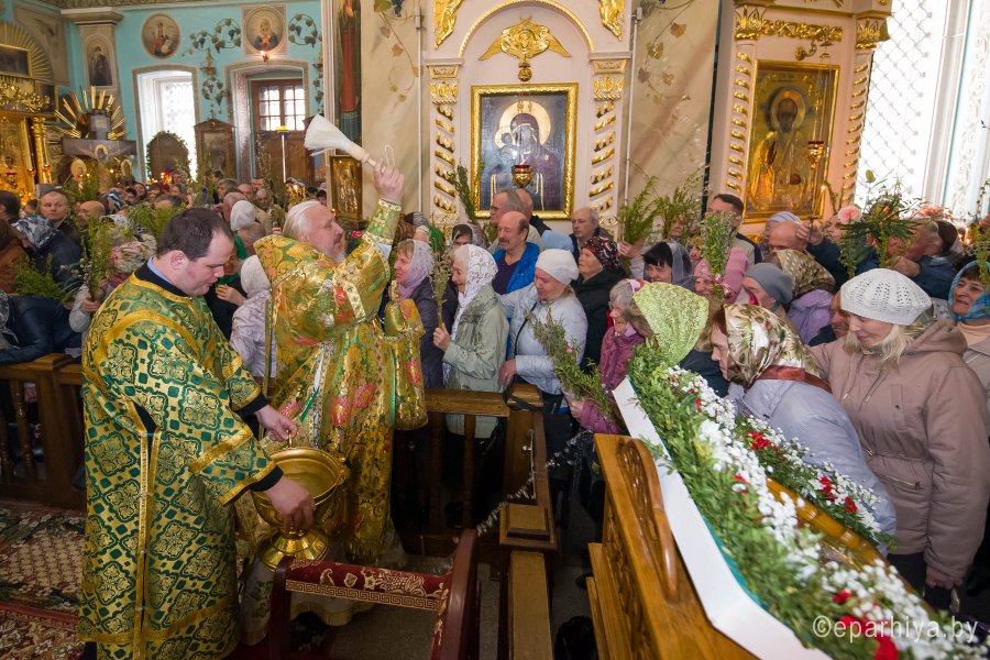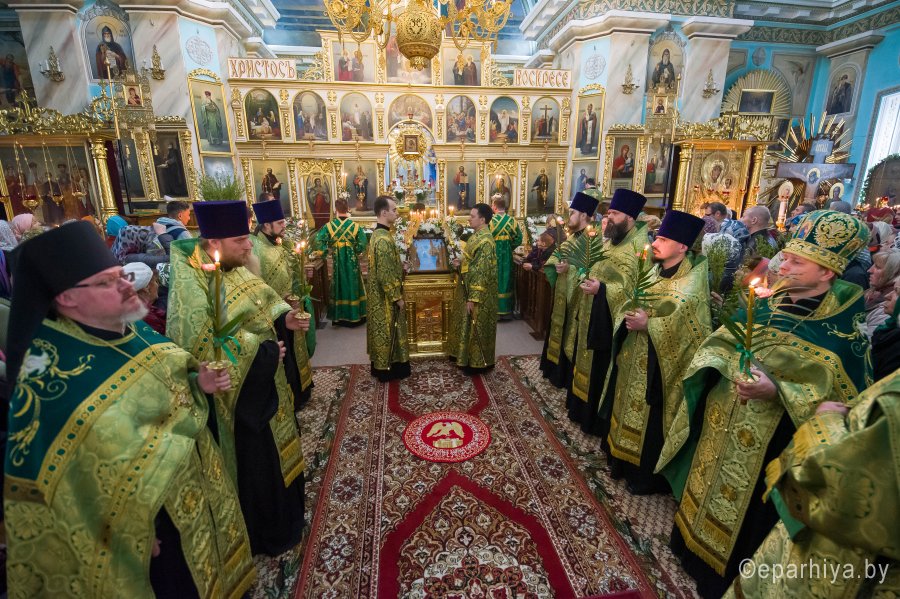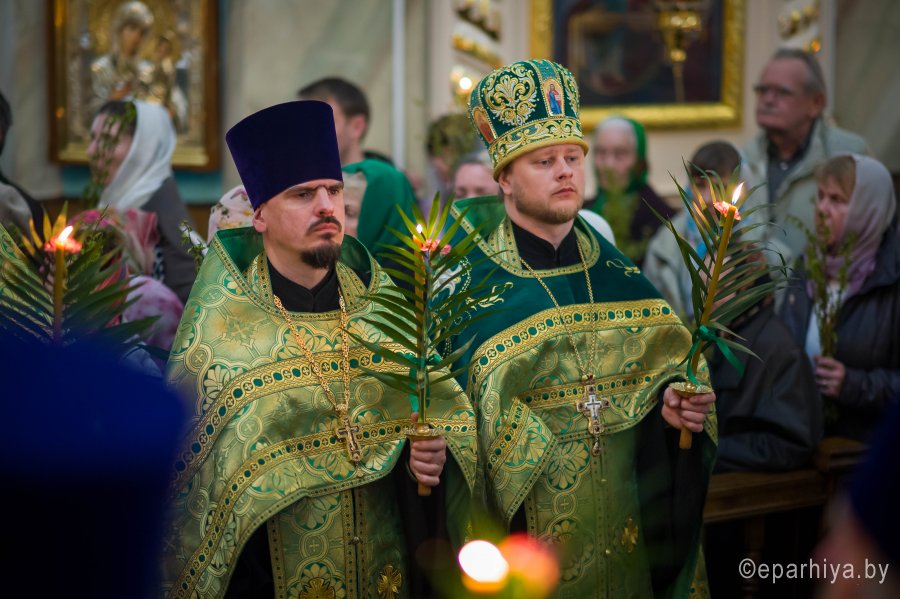 Всенощное бдение в канун праздника Входа Господня в Иерусалим, Недели Ваий, Высокопреосвященнейший Стефан совершил всенощное бдение в Петро-Павловском кафедральном соборе г.Гомеля. Высокопреосвященнейшему сослужили: секретарь Гомельской епархии протоиерей Георгий Алампиев и духовенство собора. По завершении богослужения Владыка Стефан совершил освящение ваий и обратился к молящимся со словами Архипастырского назидания. |
