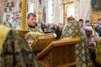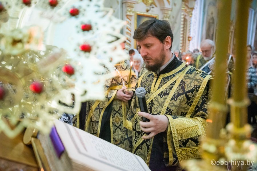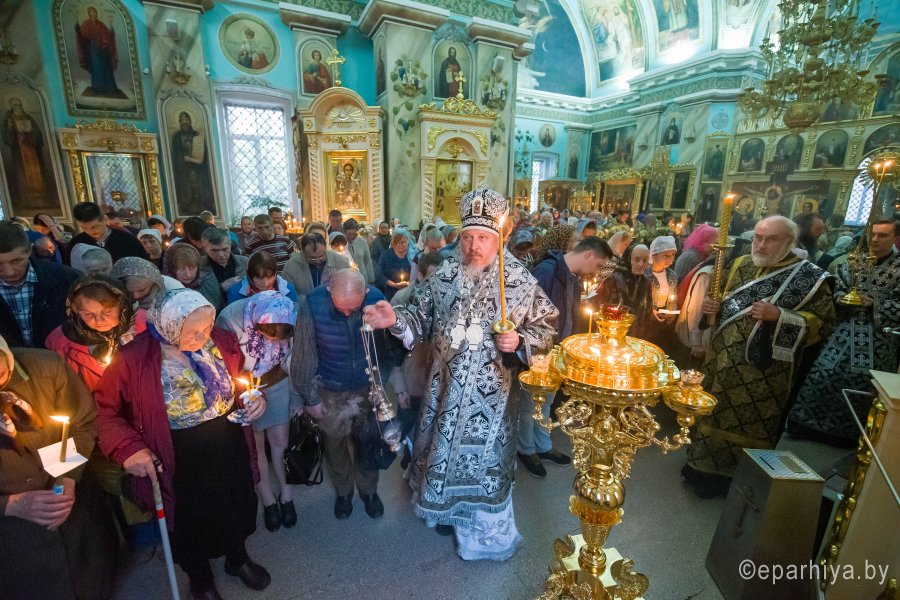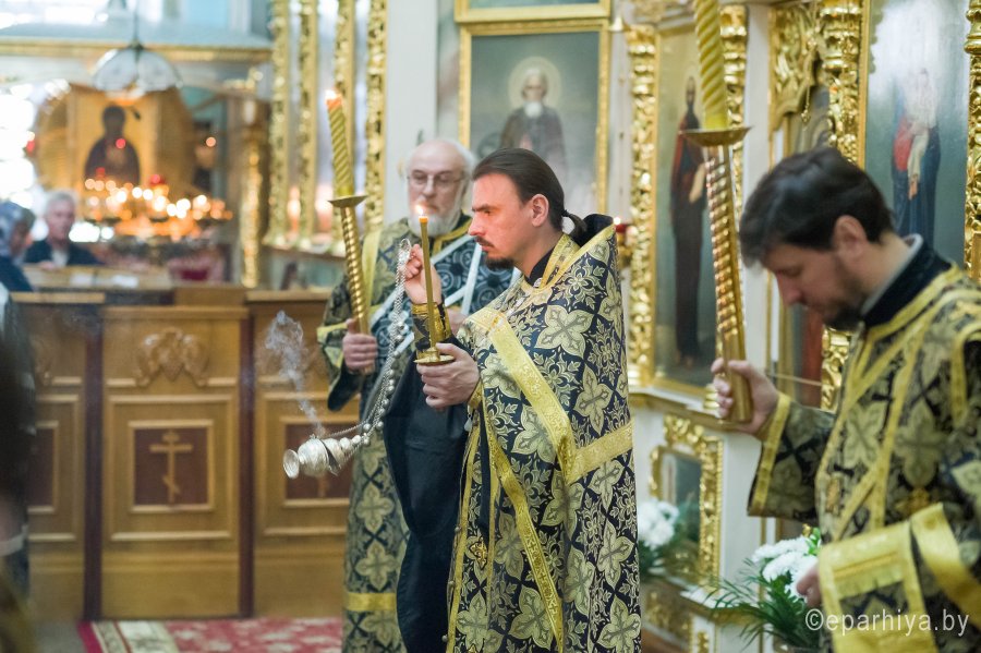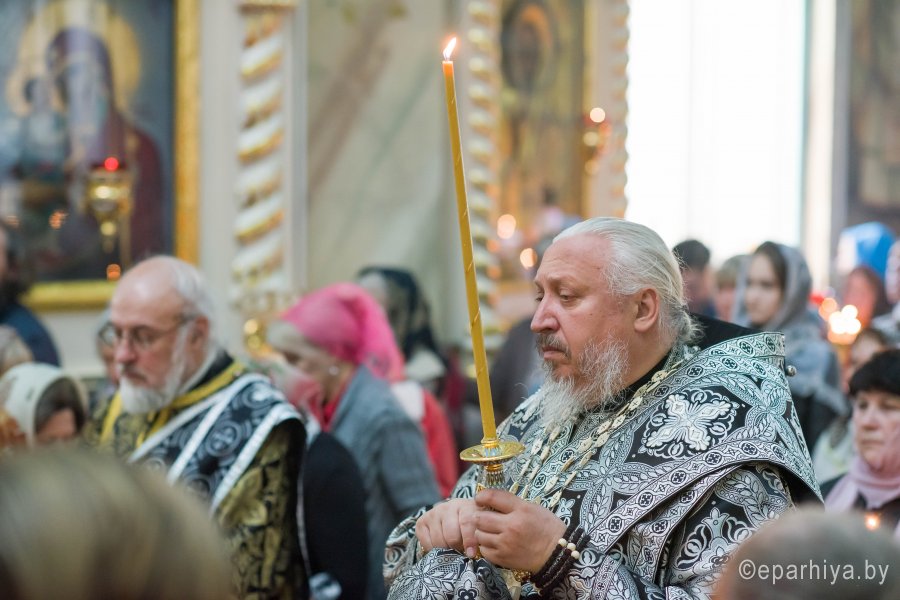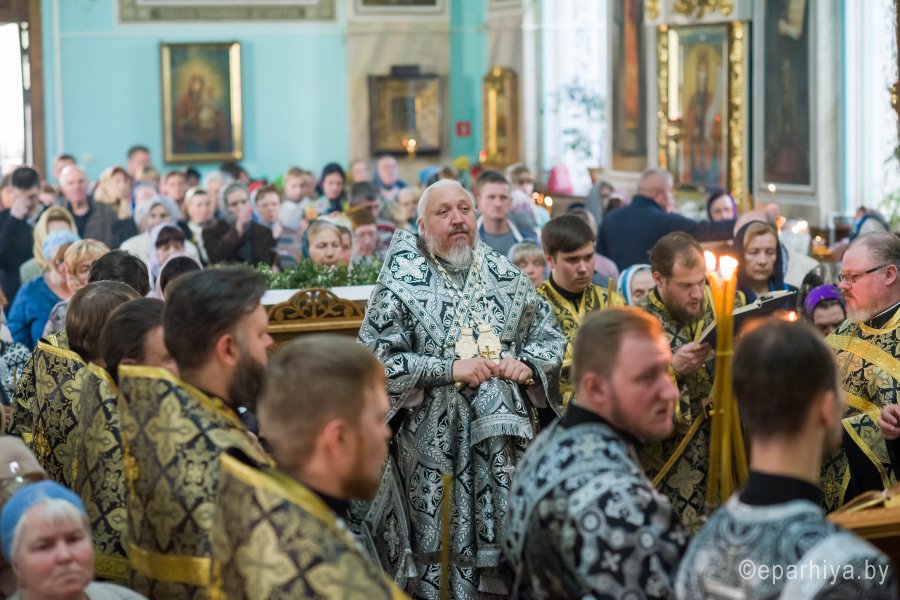 Вечером 25 апреля Высокопреосвященнейший Стефан, архиепископ Гомельский и Жлобинский совершил утреню Великого пятка с чтением 12-и Евангелий Святых Страстей Господа нашего Иисуса Христа в Свято-Петро-Павловском кафедральном соборе г.Гомеля. Высокопреосвященнейшему сослужили: секретарь Гомельской епархии протоиерей Георгий Алампиев и духовенство собора. По окончании богослужения Владыка обратился к молящимся со словами Архипастырского назидания. |