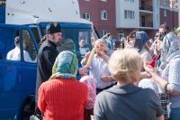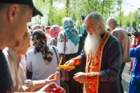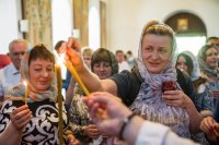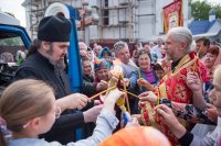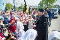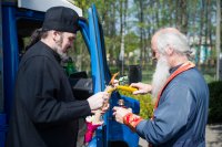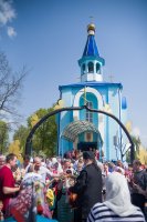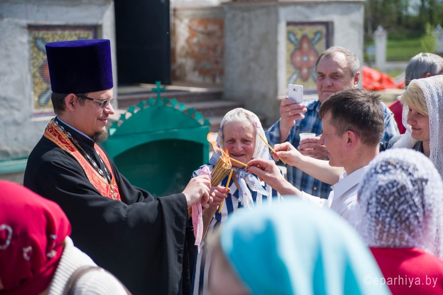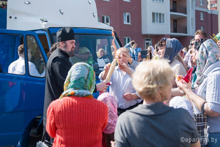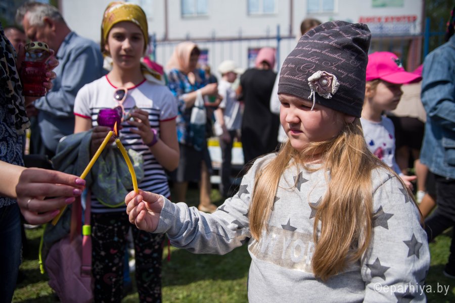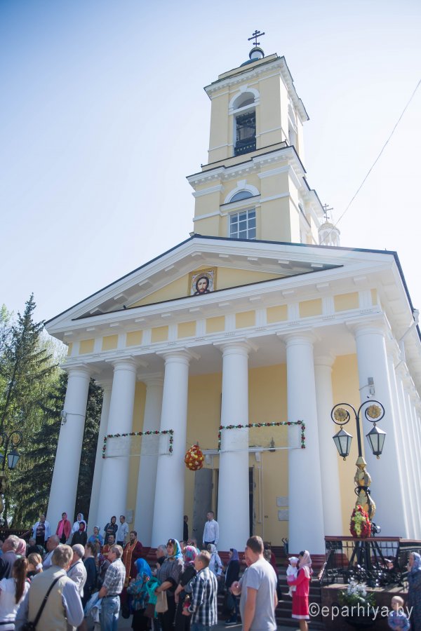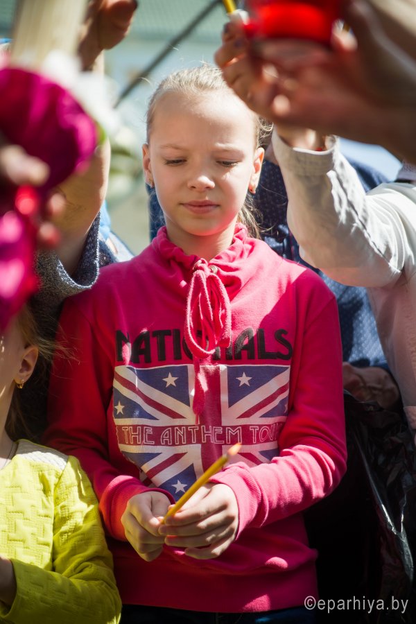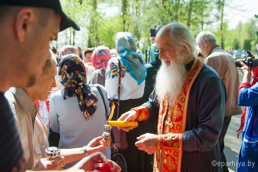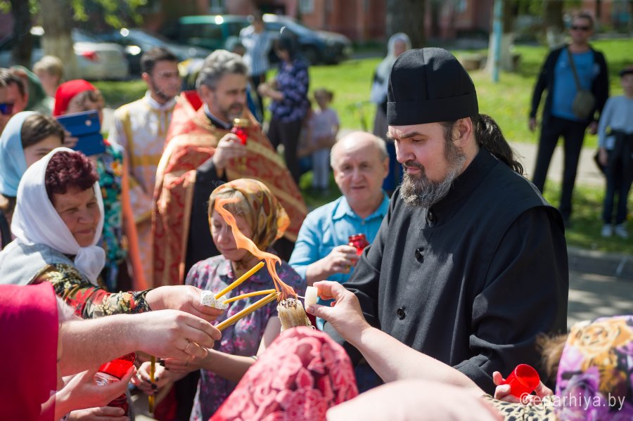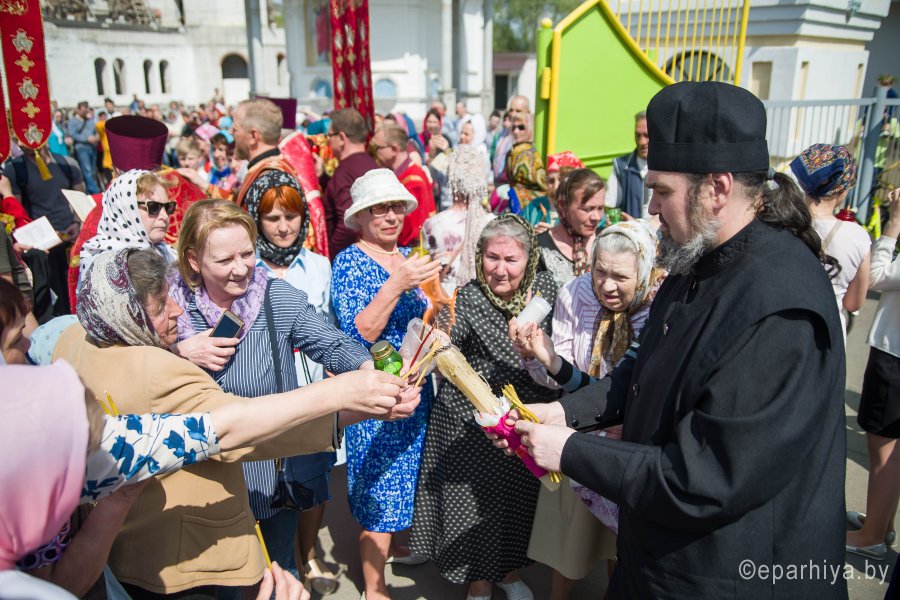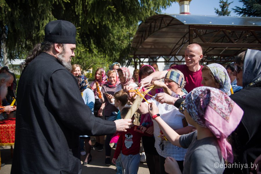 В Пасхальную ночь с 27 на 28 апреля в Гомельскую епархию из Иерусалима прибыл благодатный огонь. Утром, в праздник Светлого Христова Воскресения, он отправился с крестным ходом по храмам города. Пасхальный огонь, который символизирует воскресшего Христа, сопровождала в пути звонница Спасо-Преображенского храма. Шествие началось от кафедрального Свято-Петро-Павловского собора. Высокопреосвященнейший Стефан, архиепископ Гомельский и Жлобинский на ступеньках собора передал Благодатный огонь. Во время Крестного хода со святыней переливчатый звон колоколов разносил благую весть о Воскресении Господнем, заполняя радостью улицы и сердца людей. У храмов Благодатный Огонь встречали священнослужители и многочисленные прихожане. |