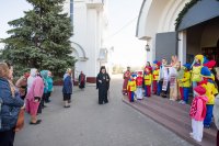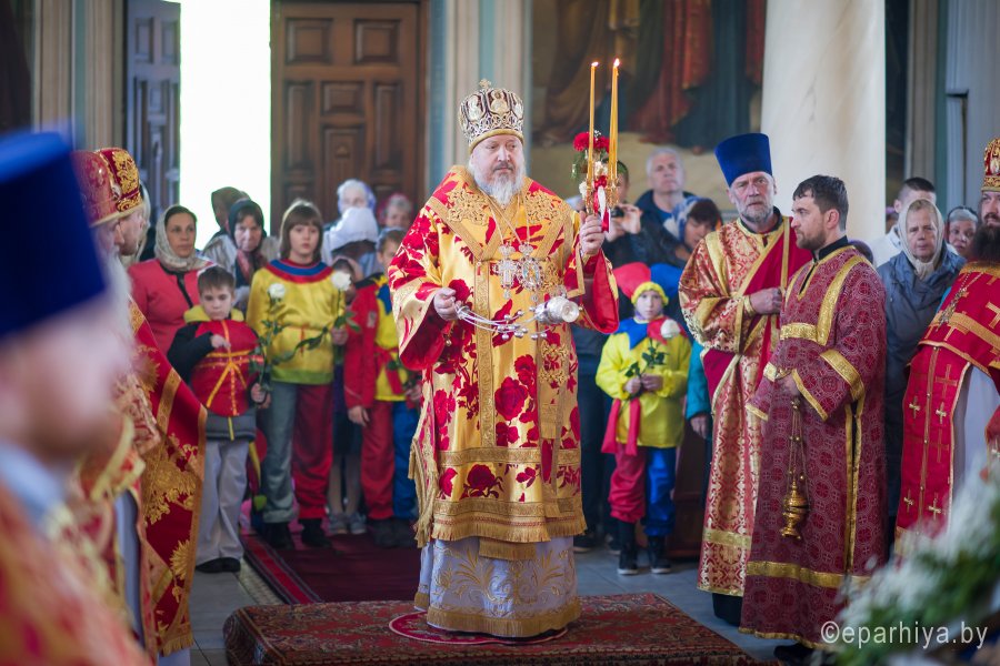 Божественную литургию во вторник Светлой седмицы, день празднования Иверской иконы Божией Матери 30 апреля 2019г. Высокопреосвященнейший Стефан совершил в одноименном храме г.Гомеля. Высокопреосвященнейшему сослужили: секретарь Гомельской епархии протоиерей благочинный монастырей Гомельской епархии архимандрит Амвросий (Шевцов), духовник епархии протоиерей Стефан Гладыщук, благочинный Гомельского районного округа протоиерей Артемий Кривицкий, благочинный Гомельского городского округа протоиерей Игорь Ольшанов, председатели отделов епархии, настоятели приходов г.Гомеля и духовенство храма. По окончании Литургии Владыка возглавил крестный ход, поздравил причастников с принятием Святых Христовых Таин и обратился к молящимся со словами Архипастырского назидания. |