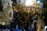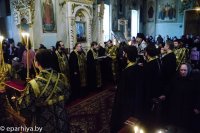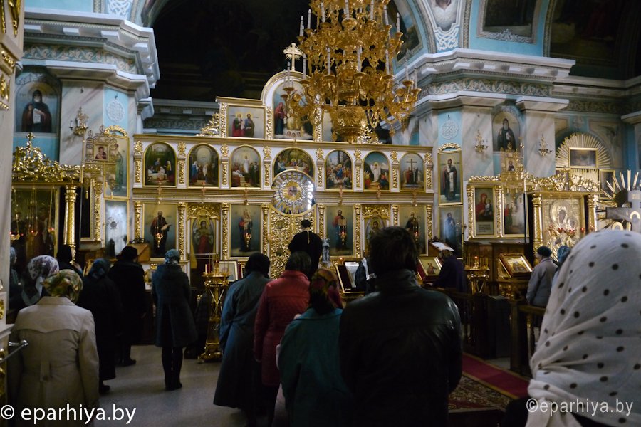 2 апреля 2014 года, Преосвященнейший Стефан епископ Гомельский и Жлобинский возглавил утреню с чтением Великого покаянного канона преподобного Андрея Критского в Свято-Петро-Павловском кафедральном соборе города Гомеля.Его Преосвященству сослужили: секретарь Гомельской епархии протоиерей Георгий Алампиев, ключарь Свято-Петро-Павловского кафедрального собора г. Гомеля протоиерей Андрей Шихалов и духовенство собора. Утреня четверга пятой седмицы Великого поста, которая по обычаю служится в среду вечером, носит название Мариино стояние. Это богослужение посвящено подвигу преподобной Марии Египетской – удивительной святой, которая после греховной молодости 47 лет провела в пустыне в подвиге покаяния. Память святой Марии чтится 14 апреля, в воскресенье и четверг 5-й седмицы Великого Поста. На этой утрене полностью прочитываются Великий покаянный канон и житие прп. Марии Египетской. Житие разделено на две части: первая читается после кафизмы; вторая – после 3 песни. Читать канон святого Андрея Критского и житие преподобной Марии Египетской в четверг пятой седмицы установлено со времени VI Вселенского Собора. |