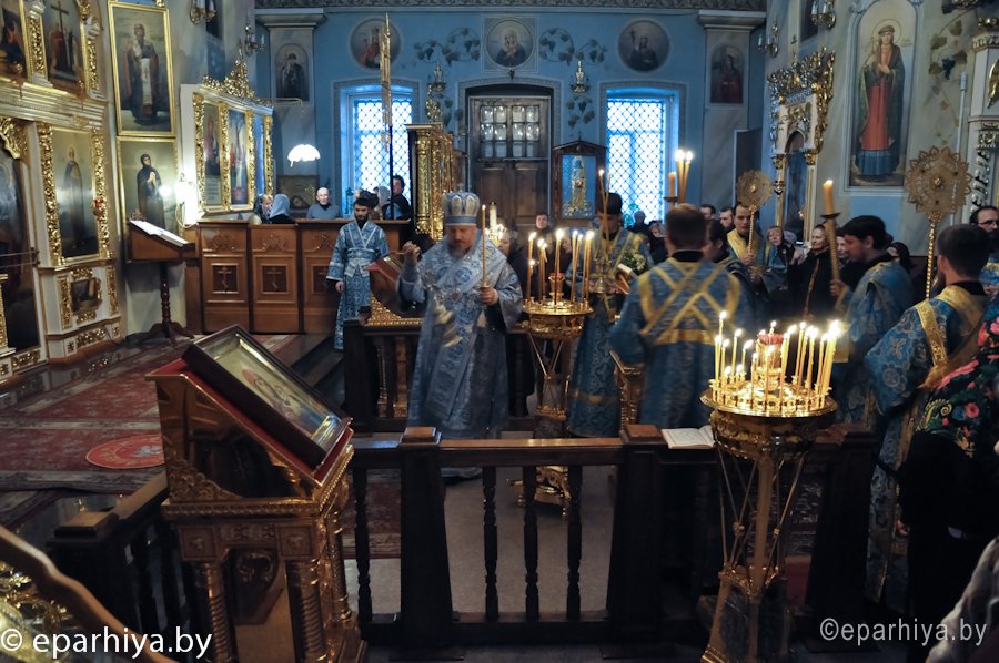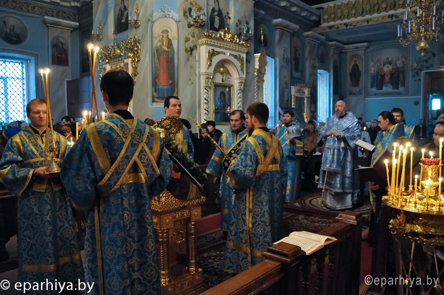 4 апреля 2014г. Преосвященнейший Стефан епископ Гомельский и Жлобинский в сослужении духовенства собора совершил утреню с чтением акафиста Пресвятой Богородице в Свято-Петро-Павловском кафедральном соборе г. Гомеля. |