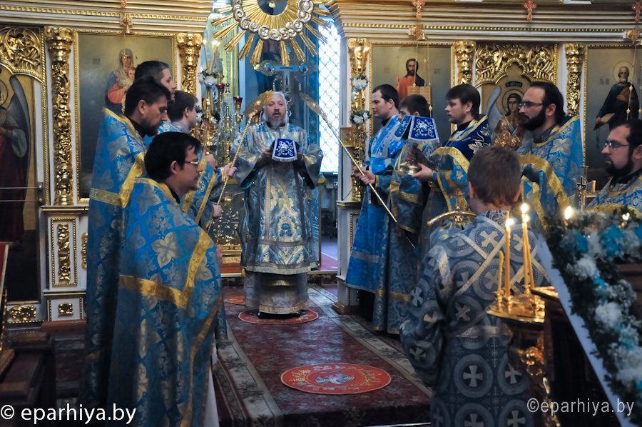 7 апреля 2014г. в праздник Благовещения Пресвятой Богородицы Преосвященнейший Стефан епископ Гомельский и Жлобинский возглавил праздничную Божественную Литургию в Свято-Петро-Павловском кафедральном соборе г. Гомеля.Его Преосвященству сослужили: секретарь Гомельской епархии протоиерей Георгий Алампиев и духовенство собора. По окончанию богослужения протоиерей Александр Лопушанский обратился ко всем присутствующим со словами проповеди. |