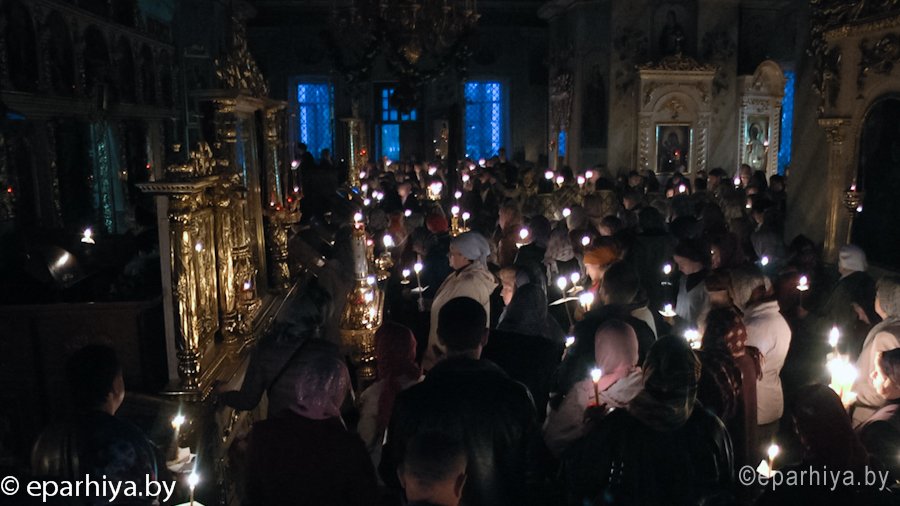 17 апреля 2014г. в Великий Четверг Преосвященнейший Стефан епископ Гомельский и Жлобинский возглавил вечернее богослужение с чтением двеннадцати Страстных Евангелий в Свято-Петро-Павловском кафедральном соборе г. Гомеля.За богослужением Преосвященному сослужили: секретарь Гомельской епархии протоиерей Георгий Алампиев и духовенство собора. По окончанию Его Преосвященство обратился ко всем присутствующим со словами проповеди. |