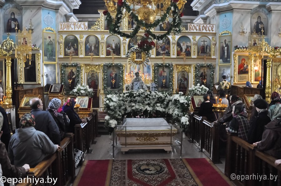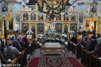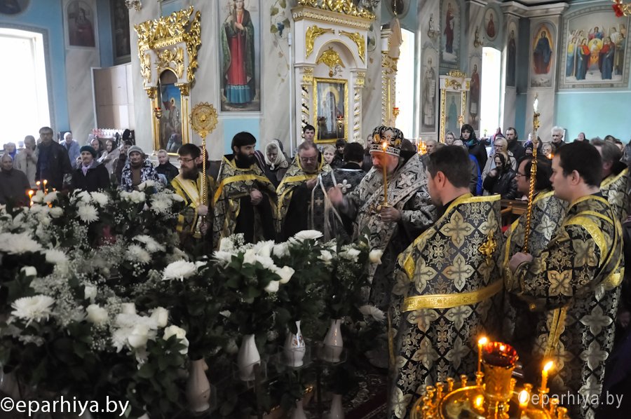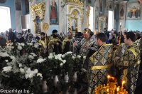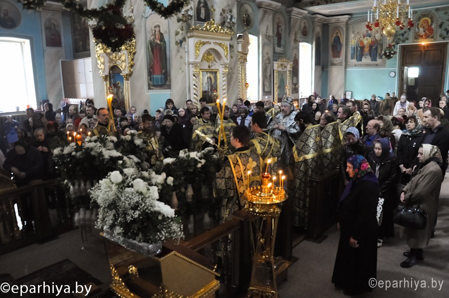 18 апреля 2014г. Преосвященнейший Стефан епископ Гомельский и Жлобинский в сослужении духовенства собора в Свято-Петро-Павловском кафедральном соборе г. Гомеля совершил чтение Царских Часов и вечерню с выносом Святой Плащаницы.Плащаницу - большой плат, на котором написан или вышит образ положенного во гроб Спасителя, выносят из алтаря и устанавливают в центре храма – во «гробе» – возвышении, украшенном цветами. Она находится в центре храма до начала воскресного Пасхального богослужения. В своей проповеди ко всем присутсвующим иеромонах Аристарх(Дроздов) отметил: "Великая Страстная пятница – самый скорбный день церковного года: Господь был распят и умер на Кресте, искупая грехи людей. В Евангелии от Иоанна сказано: «Так возлюбил Бог мир, что отдал Сына Своего Единородного, дабы всякий верующий в Него не погиб, но имел жизнь вечную» (Ин 3:16). Рассказ о дне страданий Спасителя есть у каждого из четырех евангелистов. Все, что произошло в Великую Пятницу, было важнейшей частью Божественного плана. Приговоренный судом Синедриона к смерти, в этот день Господь был приведен к римскому прокуратору Понтию Пилату. Тот не нашел никакого преступления в Его делах и желал отпустить Христа. Но после нескольких неудачных попыток сделать это, под давлением иудейских первосвященников и толпы предал Его на Распятие. Предварительно Пилат омыл руки, тем самым возложил всю ответственность за совершающееся на еврейский народ, кричавший, что «кровь Его на нас и на детях наших» (Мф 27: 25). После бичевания и поругания в претории Иисус Христос был выведен за пределы Иерусалима и распят римскими солдатами на Голгофе. Претерпев несколько часов крестных страданий, свидетелями которых было множество народа, Он умер на Кресте, «и завеса в храме разодралась надвое, сверху донизу; и земля потряслась; и камни расселись; и гробы отверзлись; и многие тела усопших святых воскресли» (Мф 27: 51-52). Двое из Его тайных учеников Иосиф Аримафейский и Никодим сняли Тело Иисуса с Креста, обвили его плащаницей и вместе с женами-мироносицами погребли тело Христа «во гробе» – небольшой пещере неподалеку от Голгофы, закрыв ее большим камнем." |