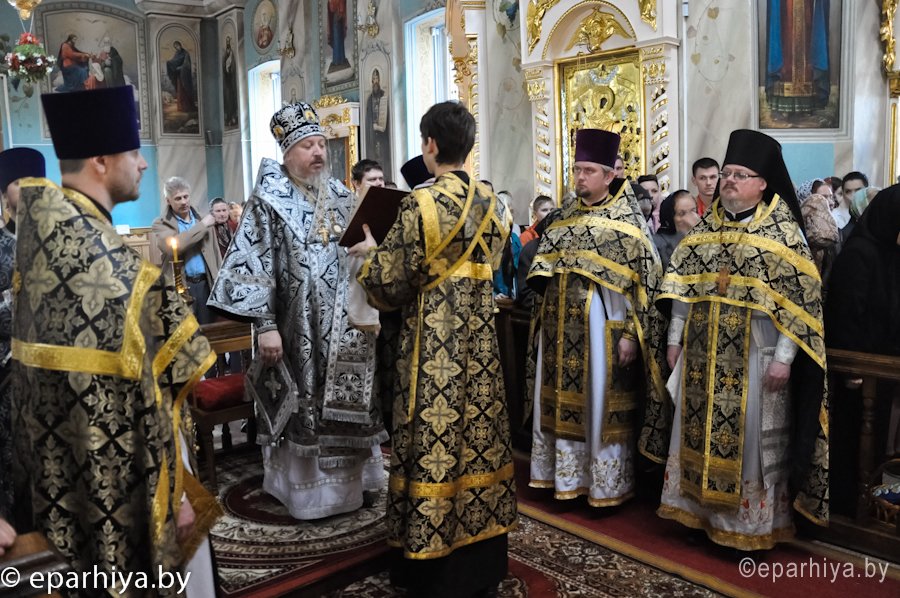 19 апреля 2014г. в Великую Субботу Преосвященнейший Стефан епископ Гомельский и Жлобинский возглавил Божественную литургию св. Василия Великого.За богослужением Преосвященнейшему сослужили: секретарь Гомельской епархии протоиерей Георгий Алампиев и духовенство собора. В этот день, по установившемуся обычаю, за литургией Его Преосвященство вознес молитву о мире на Святой Земле. Также по благословению Владыки молитва о мире на Святой Земле была прочитана во всех храмах Гомельской епархии. По окончанию богослужения Владыка обратился ко всем присутствующим с проповедью и совершил освящение куличей. |