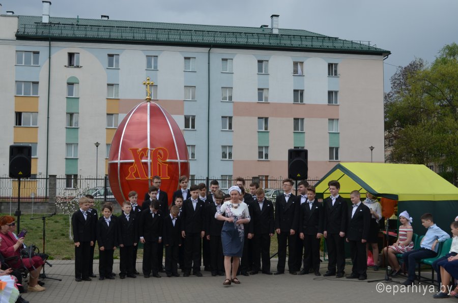 Пасхальный утренник воспитанников воскресной школы прихода храма Преображения Господня в г. Светлогорске состоялся 28 апреля на территории храма. В празднике приняли участие ребята школ города, воспитанники детского сада, обучающиеся коррекционного центра, а также образцовый хор мальчиков Светлогорской школы искусств. – Христос Воскресе! – поздравил собравшихся словами пасхальной радости благочинный Светлогорского округа протоиерей Александр Кисель. Священник пожелал всем присутствующим добра, любви, милосердия, Божиего благословения и духовной Пасхальной благодати в эти светлые дни. Ребята исполнили пасхальные песни, прочитали стихи, показали театрализованную постановку «Вкусный постный борщ»,рассказали о страничках православного календаря – лестнице Великого поста. Было весело и многолюдно, сияло яркое весеннее солнышко, всюду царило праздничное настроение. В завершение концерта ребят и взрослых угостили сладостями, крашеными яйцами и куличами. В преддверии праздника Пасхи в ГУК «Светлогорский районный дом ремёсел» прошла пасхальная ярмарка. На ярмарке собрались жители города, а также учащиеся школ, чтобы не только приобрести представленные работы мастеров, но и попробовать сделать сувениры своими руками. На празднике выступил настоятель прихода храма святых апостолов Петра и Павла в г. Светлогорске протоиерей Владимир Семенов. Священник поздравил всех присутствующих с наступающим праздником Пасхи и рассказал о событиях из жизни Иисуса Христа, предваряющих Светлое Христово Воскресение, а также о самой Пасхе. В продолжение программы звучали музыкальные номера, стихотворения, выступления, посвященные Пасхе и традициям её празднования. |