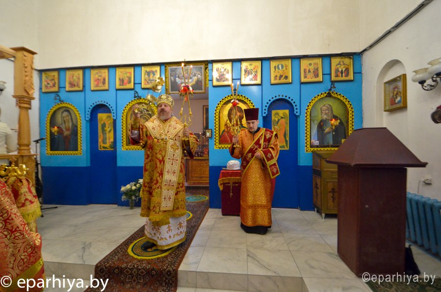 21 апреля 2014г. в понедельник Светлой седмицы Преосвященнейший Стефан епископ Гомельский и Жлобинский возглавил Божественую литургию в храме преподобного Серафима Саровского.Преосвященнейшему сослужили: секретарь Гомельской епархии протоиерей Георгий Алампиев, настоятель прихода храма преподобного Серафима Саровского протоиерей Сергей Леоньков и духовенство храма. За богослужением Владыка возглавил Крестный ход и поздравил всех с праздником Светлого Христова Воскресения. |