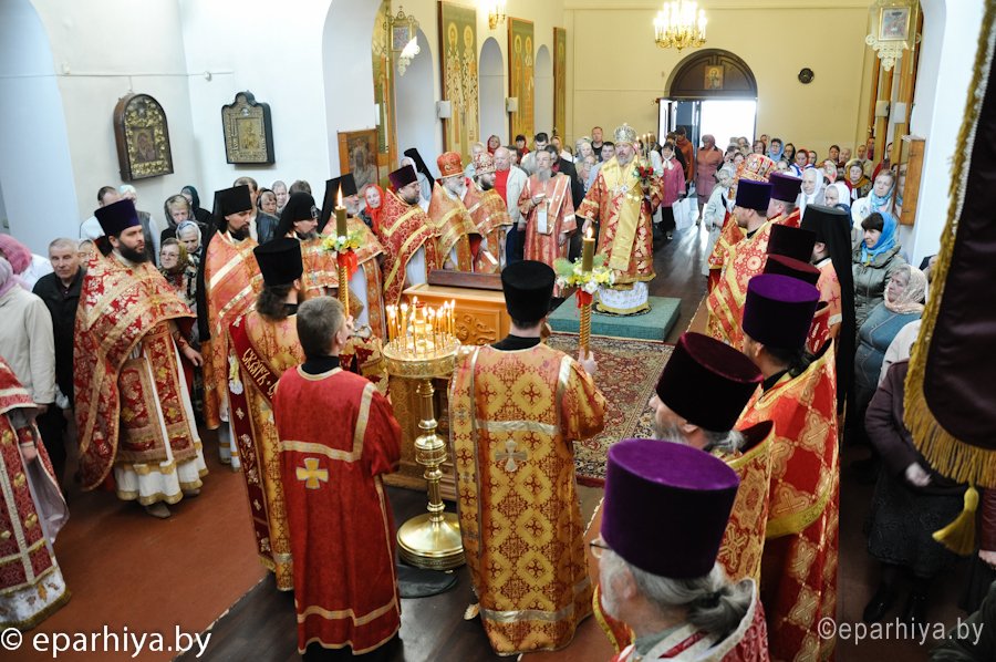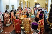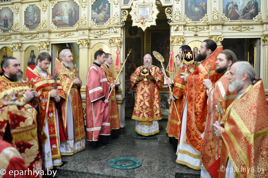 23 апреля 2014 года в Светлую среду Преосвященнейший Стефан, епископ Гомельский и Жлобинский возглавил Божественную литургию в Свято-Никольском мужском монастыре г.Гомеля.Владыка Стефан при соборном сослужении настоятелей городских храмов и духовенства Гомельской епархии возглавил литию на могиле Архиепископа Аристарха в Свято-Никольском мужском монастыре. За богослужением молились настоятельница Свято-Тихвинского женского монастыря г.Гомеля игуменья Вера с сестрами. По окончанию богослужения, Преосвященнейший поздравил протоиерея Вадима Кочана и иерея Вадима Капшука с Днем Ангела преподнеся им в дар Святой образ. |