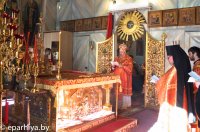25 апреля 2014г. в день иконы Божией Матери "Живоносный источник" Преосвященнейший Стефан епископ Гомельский и Жлобинский возглавил Божественную литургию в кафедральном Свято-Петро-Павловском соборе г. Гомеля.Преосвященнейшему сослужили: секретарь Гомельской епархии протоиерей Георгий Алампиев и духовенство собора. |