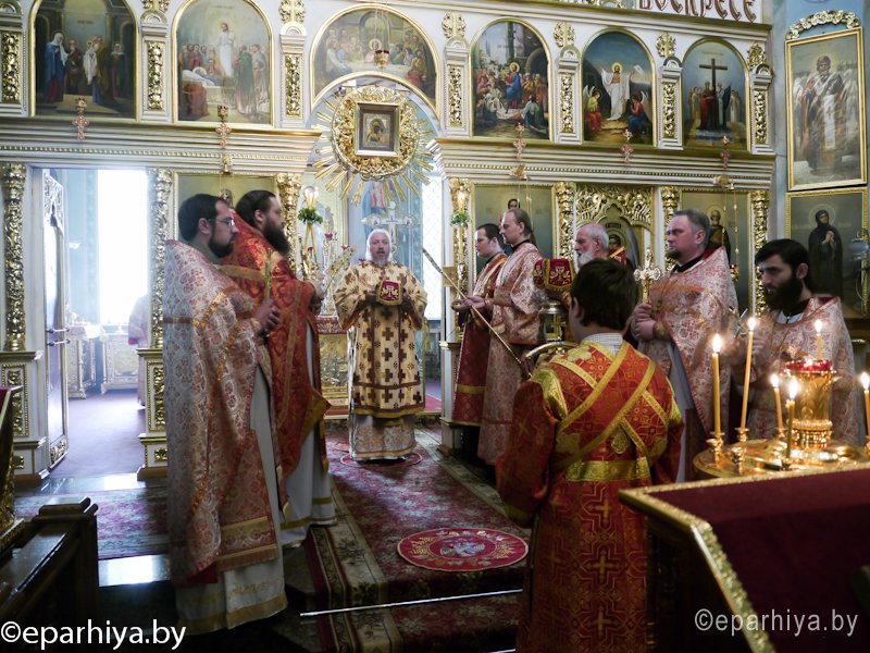 24 мая 2014г. в день Тезоименитства Святейшего Патриарха Московского и всея Руси Кирилла Преосвященнейший Стефан епископ Гомельский и Жлобинский возглавил Божественную литургию в Свято-Петро-Павловском кафедральном соборе г.Гомеля.Преосвященнейшему сослужили: благочинный Гомельского городского округа протоиерей Стефан Гладыщук, благочинный монастырей Гомельской епархии архимандрит Амвросий (Шевцов) и духовенство собора. За богослужением Владыка совершил диаконскую хиротонию. По окончанию богослужения был совершен крестный ход и провозглашены молитвы о здравии Святейшего Патриарха в день его тезоименитства. Также молебны прошли во всех храмах Гомельской епархии. |