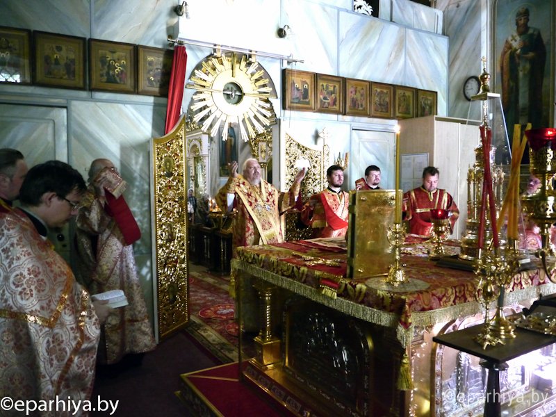 28 мая 2014г. в отдание праздника Пасхи, Преосвященнейший Стефан возглавил Божественную литургию в Свято-Петро-Павловском кафедральном соборе г. Гомеля.Преосвященнейшему сослужили: ключарь собора протоиерей Андрей Шихалов и духовенство собора. За богослужением пел хор Спасо-Преображенского храма г. Гомеля под руководством Алексея Белоножко. |