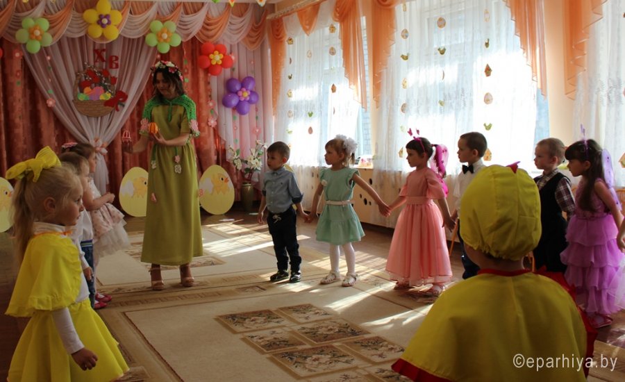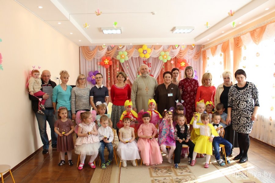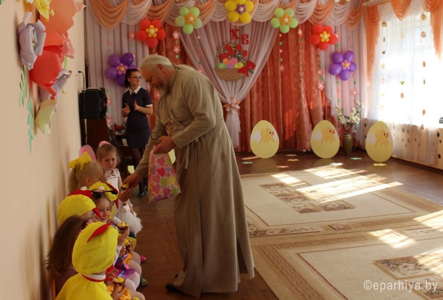 29 апреля в яслях-саду №11 г.Рогачёва состоялось Пасхальное праздничное представление, в котором принял участие настоятель прихода храма святого благоверного князя Александра Невского протоиерей Алексей Смотрицкий. Благодаря совместному творчеству детей, воспитателей Феоктистовой Натальи Сергеевны и Андреевой Cветланы Васильевны и музыкального руководителя Заплешниковой Натальи Юрьевны участники праздника окунулись в атмосферу пасхальной радости. В песнях и танцах, весёлых играх и трогательных стихотворениях прославляли ребята Воскресшего Христа. Весь мир в эти дни ликует, добро торжествует и даже самые чёрствые сердца смягчаются. Весна-красна принесла в подарок детям поучительную сказку о том, как дружба и прощение могут перевоспитать даже хитрую Лису. Общую радость разделил с ребятами и взрослыми протоиерей Алексей Смотрицкий. Поздравив всех с Воскресением Христовым, священник объяснил, какое важное значение имеет для нас это событие, и на память о празднике подарил ребятам пасхальные сувениры. |