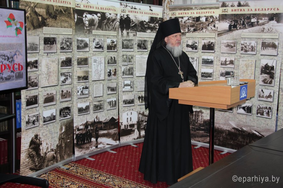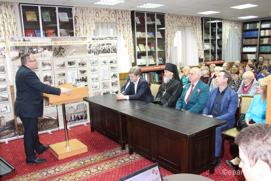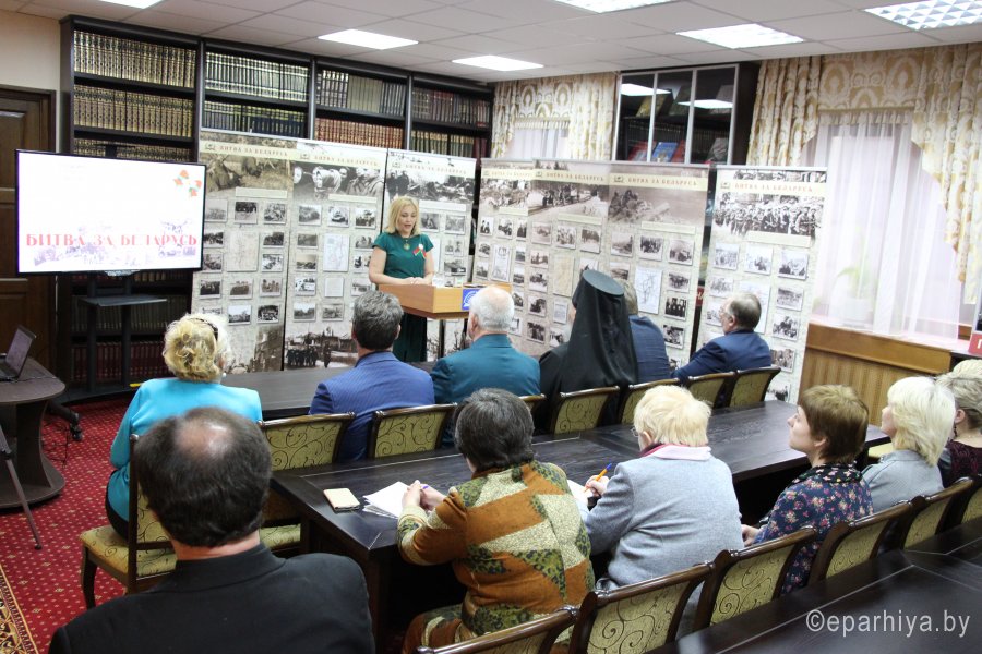 1 мая накануне Дня Победы и 75-летия освобождения Беларуси от немецко-фашистских захватчиков в Президентской библиотеке Республики Беларусь прошла фотовыставка «Битва за Беларусь». Партнёрами выставки, предоставившими фотодокументы, стали Президентская библиотека Республики Беларусь, Министерство обороны Республики Беларусь, Гомельский областной музей воинской славы, Национальная киностудия «Беларусьфильм». В рамках фотовыставки был показан отрывок из документального фильма о деревне Ола Светлогорского района, где 14 января 1944 года фашисты сожгли и расстреляли 1758 человек, из них 950 детей. Участников мероприятия, приветствовал директор Президентской библиотеки Республики Беларусь Сергей Квачан. – В истории каждой страны есть события, которые должны быть сохранены в народной памяти, – сказал Сергей Иванович. – Президент Республики Беларусь в своих выступлениях неоднократно отмечал, что 9 Мая – великий всенародный праздник. В рамках нашего мероприятия будем вспоминать солдат, которые приблизили эту Победу, героев, павших на полях сражений и, конечно, мирных граждан, которые погибли от рук немецко-фашистских захватчиков. Участники мероприятия почтили павших минутой молчания. Директор Гомельского областного музея военной славы Дмитрий Чумаков рассказал о музее, о самом ценном экспонате – советском танке Т-34-85, который подарил Президент Республики Беларусь на открытии музея. Дмитрий Алексеевич рассказал о хранении исторических артефактов и просветительской работе. Тему продолжил заместитель директора Гомельского музея военной славы по научной работе Константин Мищенко. Он рассказал о малоизвестных широкой общественности событиях войны, о невероятных подвигах героев. О духовно-нравственном воспитании подрастающего поколения и опыте взаимодействия Православной Церкви с государственными общественно-культурными организациями рассказал настоятель прихода храма Святой великомученицы Варвары аг. Боровики архимандрит Алексий (Желенок). – Дорогие братья и сёстры! Мы не хотим войны, мы категорически против нее. При этом мы понимаем ту ситуацию, когда во время войны один воин воюет против другого воина во имя каких-то идей и цели. Но совсем другое дело, когда при этом погибают мирные жители. Во время Великой Отечественной войны деревня Ола входила в Чирковичский приход. Когда меня девять лет назад назначили настоятелем церкви Святых двенадцати апостолов в агрогородке Чирковичи, Божиим промыслом начали происходить интересные события. Лесничий из деревни Искра рассказал о том, что всегда после дождя из-под земли вымываются кости, человеческие скелеты. Экспертиза показала, что это останки людей, которые погибли в годы Великой Отечественной войны. В ходе проведённых поисковым батальоном раскопок, было обнаружено самое большое захоронение останков людей именно на том месте, где стояла деревня Ола. Вероятно, это было гумно размером 15х30 метров. В тот период Светлогорский лесхоз в том районе должен был заготавливать лес, а для этого запроектировали дорогу. И оказалось, что эта дорога пролегает прямо над тем местом, где погибли люди. В результате общественной деятельности был изменён проект дороги, совместными усилиями поставлен крест в том месте. Мы должны сохранить память о невинно убиенных людях. Трагедия Олы всег