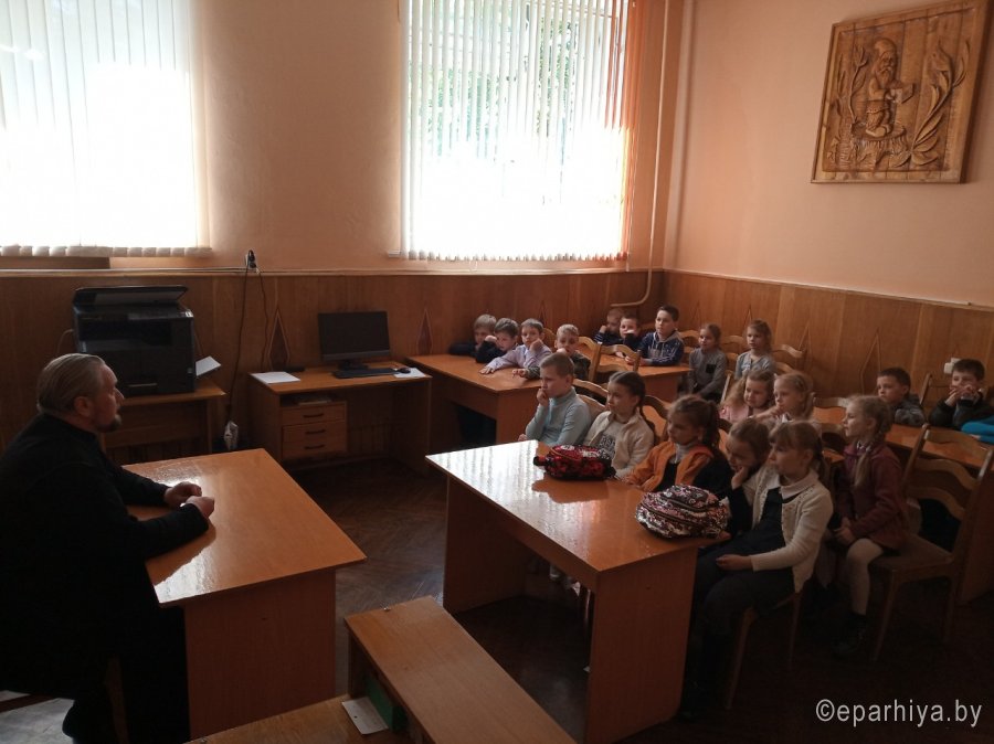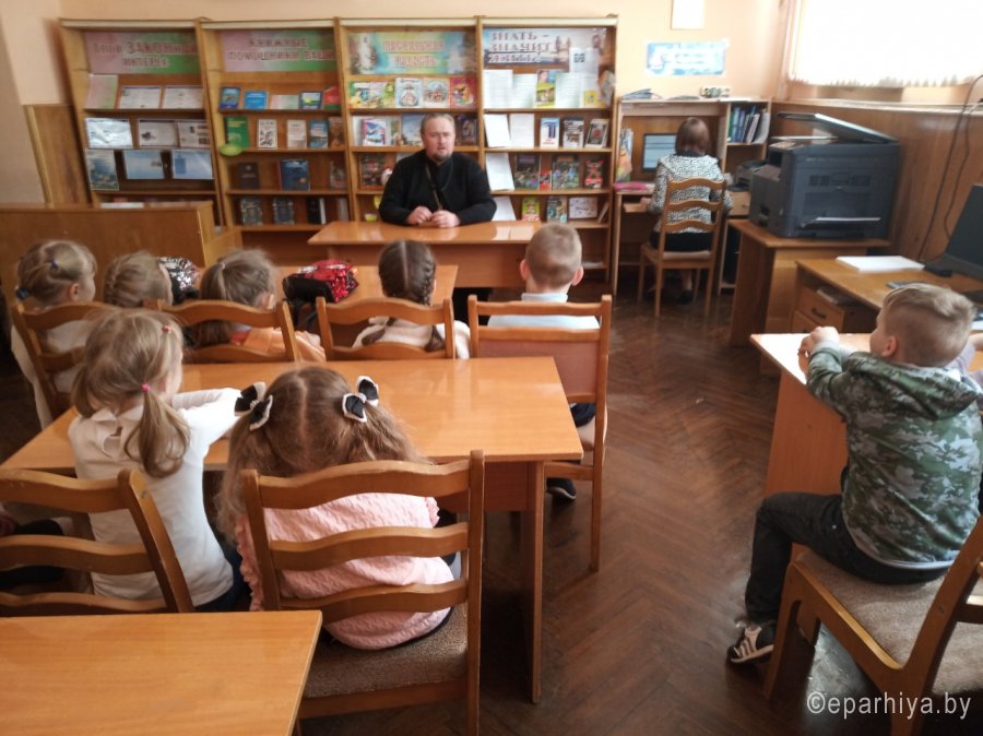 Пасхальная встреча для школьников из ГУО Гимназии 71 г. Гомеля прошла 4 мая в детской библиотеке №16. Клирик храма Иверской иконы Божией протоиерей Андрей Шихалов рассказал школьникам о значении Светлого Христова Воскресения.