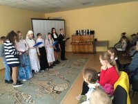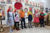 Для воспитанников центра был подготовлен Пасхальный утренник. В этом году в представлении приняли участие и самые младшие учащиеся воскресной школы. Преподаватель воскресной школы Прихода Новикова Роза Анатольевна организовала программу выступления так, чтобы в ней обязательно были задействованы зрители. Дети, находящиеся в центре, отвечали на загадки, дополняли строчки стихотворений, дружно хлопали в припевах песен. Воспитанники воскресной школы лично вручили каждому из ребят сладкие подарки.
