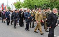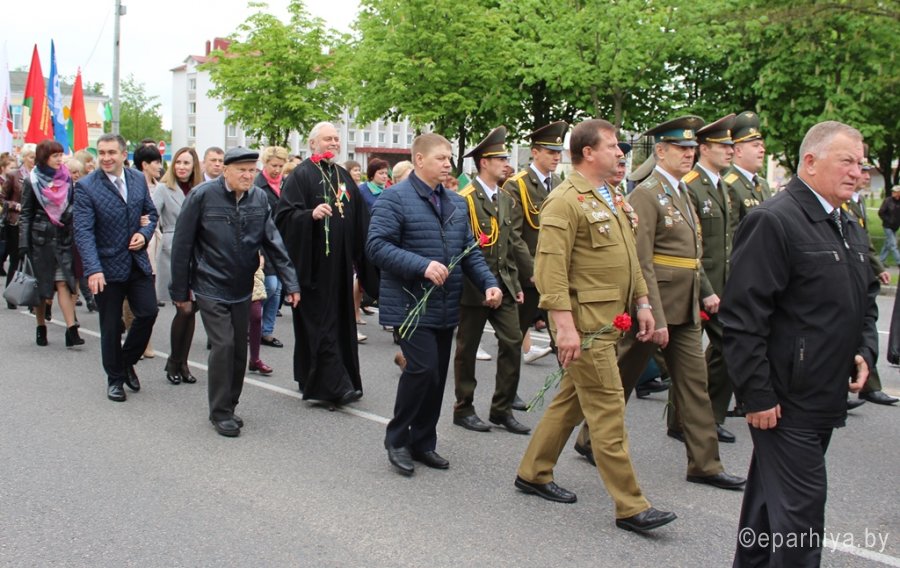 В 74 годовщину Великой Победы над немецко-фашистскими захватчиками, 9 мая 2019 года, в храме святого благоверного князя Александра Невского в г.Рогачёве был совершён благодарственный молебен ко Господу Богу, певаемый в День Победы в Великой Отечественной войне. Затем благочинный Рогачёвского округа протоиерей Алексей Смотрицкий принял участие в торжествах, посвящённых празднованию Дня Победы. Традиционное шествие трудовых коллективов, общественных организаций, жителей и гостей Рогачёва к Мемориалу Славы «Мы памятью нашей сильны» украсили участники акции "Беларусь помнит" с портретами родных, которые приближали Великую Победу. Во время торжественного митинга протоиерей Алексей Смотрицкий обратился с приветственным словом к ветеранам и всем присутствующим: «Сегодня всех нас переполняет чувство гордости за тех, кто смог отстоять нашу землю и остановить коричневую чуму своей большой жертвенностью, невероятным трудом, огромными потерями. Радость, что мы живём на своей земле свободно. Строим свою страну, создаём семьи, растим детей и с признательностью вспоминаем тех, кто подарил нам эту возможность. Хочется выразить им огромную благодарность и сказать, что мы никогда не забудем об их подвиге. Мы постараемся воспитать наших детей так, чтобы нам было кому передать то Знамя Победы, которое мы держим сегодня. Отрадно видеть здесь младшее поколение рядом со старшими. Значит, память не умрёт, истину не затопчут, мы будем жить на свободной земле! С праздником, дорогие друзья! » По окончании митинга к Мемориалу и кургану Славы были возложены цветы. |