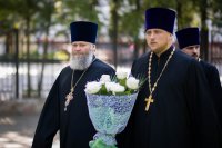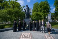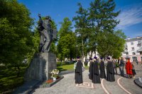 Cвященнослужители епархии возложили цветы к памятнику святителя Кирилла Туровского