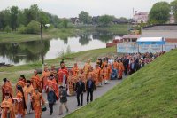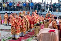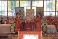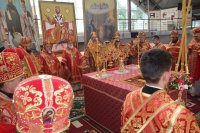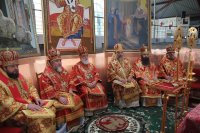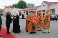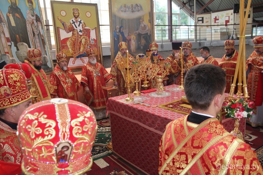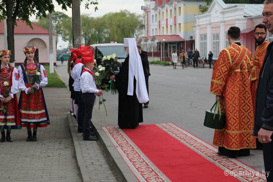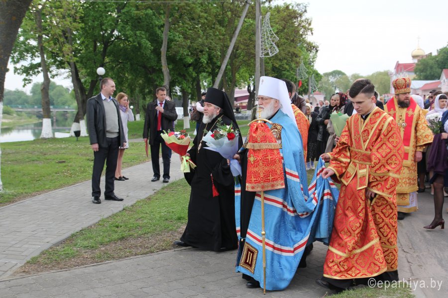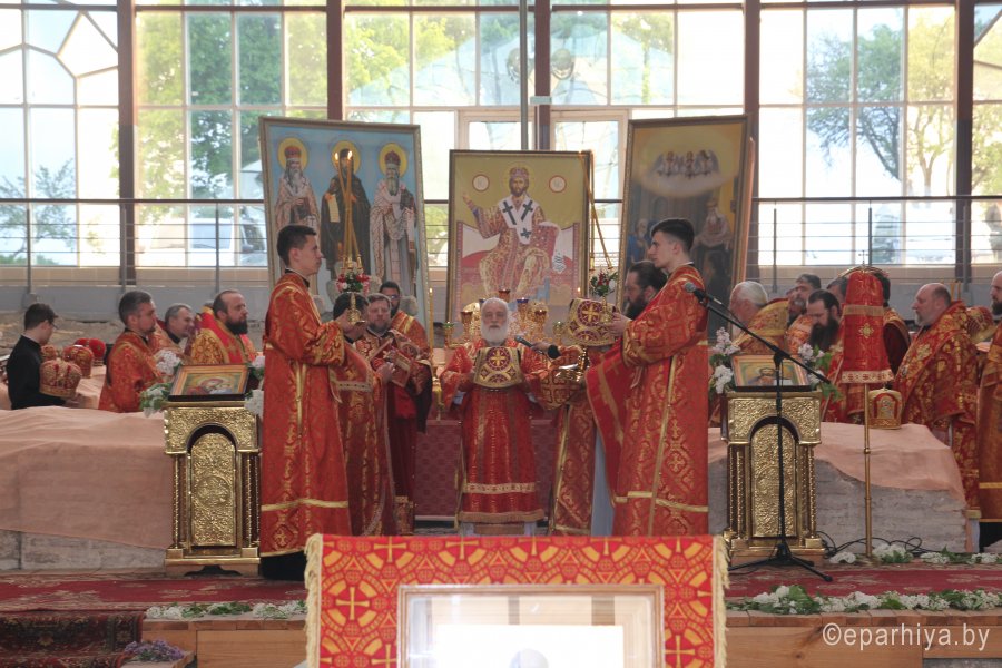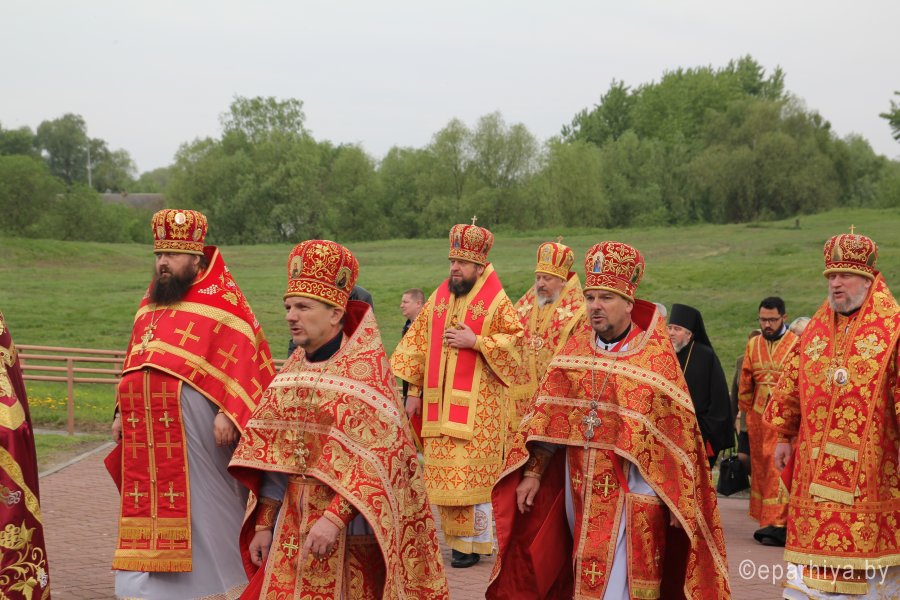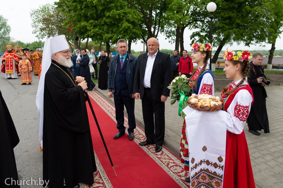 11 мая 2019 года, в субботу 2-й седмицы по Пасхе, день памяти святителя Кирилла, епископа Туровского, митрополит Минский и Заславский Павел, Патриарший Экзарх всея Беларуси, прибыл в город Туров и возглавил торжества, посвященные дню памяти святителя Кирилла, епископа Туровского. Перед началом Божественной литургии владыка Экзарх, епископат и духовенство возложили цветы к памятнику павшим воинам в Великой Отечественной войне. Всем погибшим воинам и потрудившимся ради Великой Победы была провозглашена вечная память. Затем участники торжеств возложили цветы к памятнику, посвященному 1000-летию Туровской епархии. Божественная литургия была совершена в павильоне над фундаментом древнего кафедрального собора, который был разрушен землетрясением в XIII веке. Патриаршему Экзарху сослужили: архиепископ Гомельский и Жлобинский Стефан, епископы: Туровский и Мозырский Леонид, Слуцкий и Солигорский Антоний, Лидский и Сморгонский Порфирий, Боровлянский Игнатий, викарий Минской епархии. Архипастырям сослужили: Председатель синодальной комиссии по канонизации святых Белорусской Православной Церкви архимандрит Амвросий (Шевцов), клирики Туровской епархии и приглашенные гости в священном сане. На богослужении присутствовали: главный специалист Главного управления идеологии, культуры и по делам молодежи Гомельского облисполкома Денис Владленович Давыдов, председатеть Житковичского райисполкома Виктор Адамович Атливанов, председатель Туровского городского исполнительного комитета Игорь Леонидович Митюрич и другие официальные гости и представители районов, входящих в каноническую территорию Туровской епархии. Богослужебные песнопения исполнил архиерейский мужской хор Михайловского кафедрального собора города Мозыря под управлением протодиакона Георгия Тывонюка. Проповедь перед Причастием произнес председатель комиссии по канонизации святых Туровской епархии иерей Ростислав Бондаренко. После богослужения все участники торжеств проследовали к памятнику святителя Кирилла, епископа Туровского и совершили чин славления. По окончании молитвословия к собравшимся с приветственным словом обратился епископ Туровский и Мозырский Леонид. После этого заместитель председателя Житковичского райисполкома Виктор Михайлович Волотовский огласил приветственный адрес от имени районного исполнительного комитета. Затем Патриарший Экзарх поздравил духовенство и благочестивых паломников с днем памяти святителя Кирилла Туровского и обратился ко всем почтившим праздник со словом назидания. |
