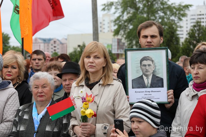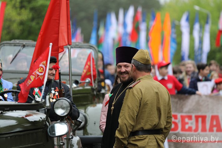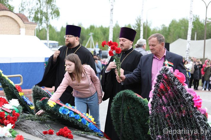 74 года без войны, страшной, жуткой. Без грохота орудий и пулеметных очередей. Без гибели солдат и мирных жителей. Без слез матерей и детей. 74 года мира и созидания, радости и благоденствия! Живой поток приобрел форму плотной колонны, которая в назначенный час выдвинулась по улице 50 лет Октября к мемориалу «Молчащий колокол». Впереди, в автомобилях времен прошедшей войны ехали ветераны Великой Отечественной войны. Это они, стойкие и мужественные, ценой неимоверных усилий одолели грозного врага и подарили мир нашей многострадальной земле. Вслед за ними плечом к плечу шагало нынешнее поколение светлогорцев. В руках они несли государственные знамена и флаги предприятий, учреждений, общественных и молодежных организаций. Сегодня, получив от героического поколения в наследство мощный промышленный комплекс, развитую структуру социально-значимых объектов и учреждений, они продолжают достойно нести трудовую вахту, своими успехами продолжая подвиг отцов и дедов. Колонна проследовала к месту захоронения воинов, погибших при освобождении Шатилок. Их имена навечно вписаны в бронзовый монумент «Молчащего колокола». И в День Великой Победы к нему пришли горожане и многочисленные гости не только из Беларуси, но и братских стран, чтобы почтить память и выразить свою благодарность. Со словами приветствия и поздравлений к присутствующим обратились председатель Светлогорского райисполкома Дмитрий Алейников, депутат Палаты представителей Национального собрания Республики Беларусь Галина Филиппович и председатель Совета ветеранов войны и труда Светлогорского района Валентина Рудинская. Ветеранов войны и труда приветствовал благочинный Светлогорского округа протоиерей Александр Кисель. После торжественного митинга «Как хорошо на свете без войны» от «Колокола» гостей и жителей города большое количество праздничных мероприятий. От мемориала одна из машин, участвовавшая в праздничном шествии, отправилась по городу. Из нее в исполнении самодеятельных артистов звучали песни военных лет. А на Набережной, у ТЦ «Березки» и ТЦ «Анженко» все желающие могли отведать настоящей солдатской каши. Автор: Дмитрий Хомицевич |