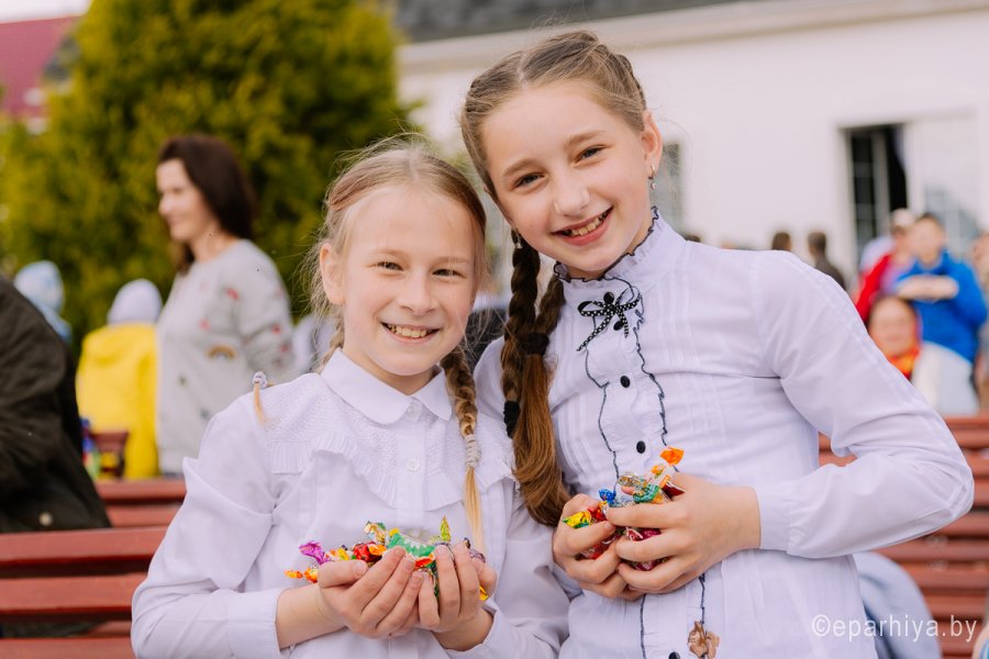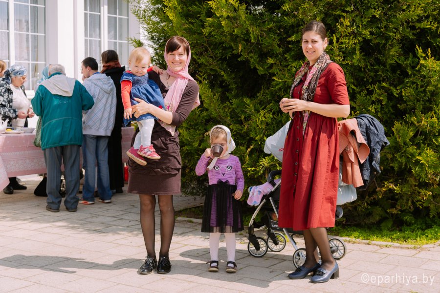 В день памяти святых жен-мироносиц в храме святителя Василия Великого в г.Жлобине традиционно чествовали больших и маленьких прихожанок. Настоятель храма иерей Вячеслав Рябица по окончании богослужения подарил девочкам и женщинам сладкие подарки и пригласил всех на праздничное мероприятие возле храма. Стараниями талантливых прихожан, взрослого и детского приходских хоров, был подготовлен концерт, посвященный празднику жен-мироносиц и окончанию учебного года в воскресной школе. Звучали пасхальные песнопения и душевные песни, дети читали тематические стихи, вокальные номера сменялись инструментальным исполнением произведений. В конце концерта священник поздравил детей с завершенным учебным годом в воскресной школе, пожелал веселых летних каникул и подарил детям иконки. Продолжился праздник у сладкого стола с домашней выпечкой, накрытого заботливыми руками сестер милосердия из приходского сестричества. Детям были предложены игры на площадке возле храма, а взрослые радовались чаепитию, душевному общению и солнечной погоде. |