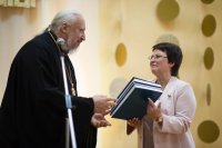 15 мая коллектив Гомельской центральной городской библиотеки им. А. И. Герцена во главе с директором Власовой Татьяной Савельевной принимал поздравления от гостей, коллег, друзей, партнеров в связи со 100-летием со дня образования библиотеки. Теплые слова в адрес учреждения культуры сказали первый заместитель начальника главного управления идеологической работы, культуры и по делам молодежи Гомельского облисполкомаЗавгородняя Инга Сергеевна и начальникуправления идеологической работы, культуры и по делам молодежи Гомельского горисполкома Дегтярева Екатерина Викторовна. Архиепископ Гомельский и Жлобинский Стефан принял участие в торжественном мероприятии в числе почетных гостей. Владыка поздравил сотрудников с юбилеем, упомянув, что публичные библиотеки продолжают славные традиции развития образования, культуры и сохранения духовности, начатые еще св. Евфросинией Полоцкой, св. Кириллом Туровским и многими другими, несущими просвещение людям и делающими его доступным. В знак глубокого уважения и признательности за многолетнее тесное сотрудничество между Гомельской епархией, Никольским мужским монастырем, сетью публичных библиотек и в связи со 100-летним юбилеем центральной городской библиотеки архиепископ Стефан вместе с архимандритом Амвросием (Шевцовым), наместником Никольского монастыря в г. Гомеле, преподнес в дар библиотеке им. А. И. Герцена комплект книг «Православная энциклопедия» из 52-х томов и подписку на приобретение следующих. Торжественная церемония поздравления коллектива и награждения сотрудников библиотеки грамотами и подарками завершилась концертной программой. *** «Православная энциклопедия» - как утверждают издатели,самый масштабный научный издательский проект не только в истории Русской православной церкви, но и в истории всемирного православия. Проект находится в состоянии реализации. Статьи в томах размещаются по алфавитному признаку. 52 том содержит материалы от «Но-» до «-Он». |
